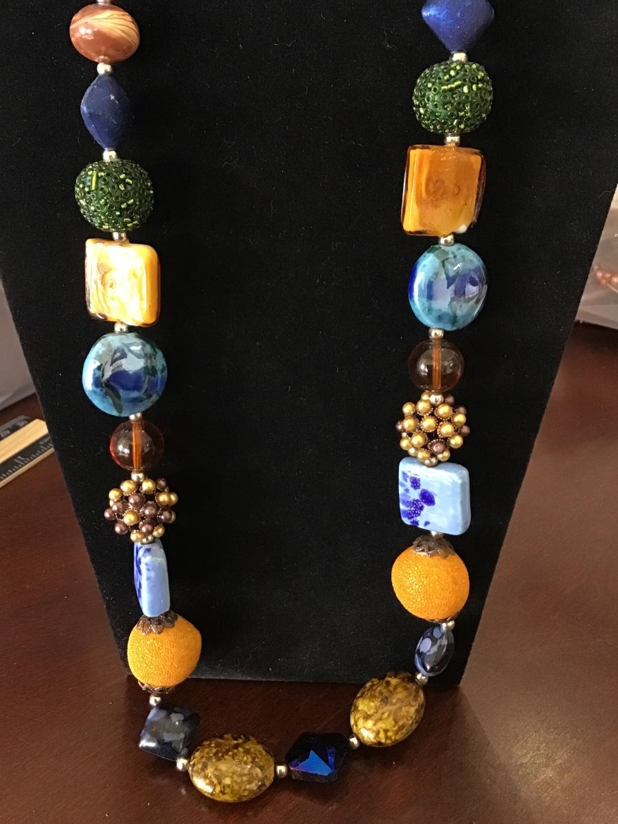 Sugar Bead Tile Glass Stone Vintage Necklace