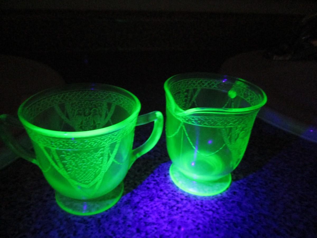 Sugar & Creamer Depression Glass Uranium/Vaseline