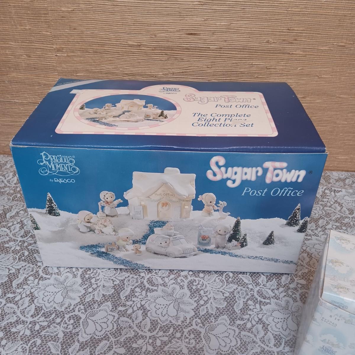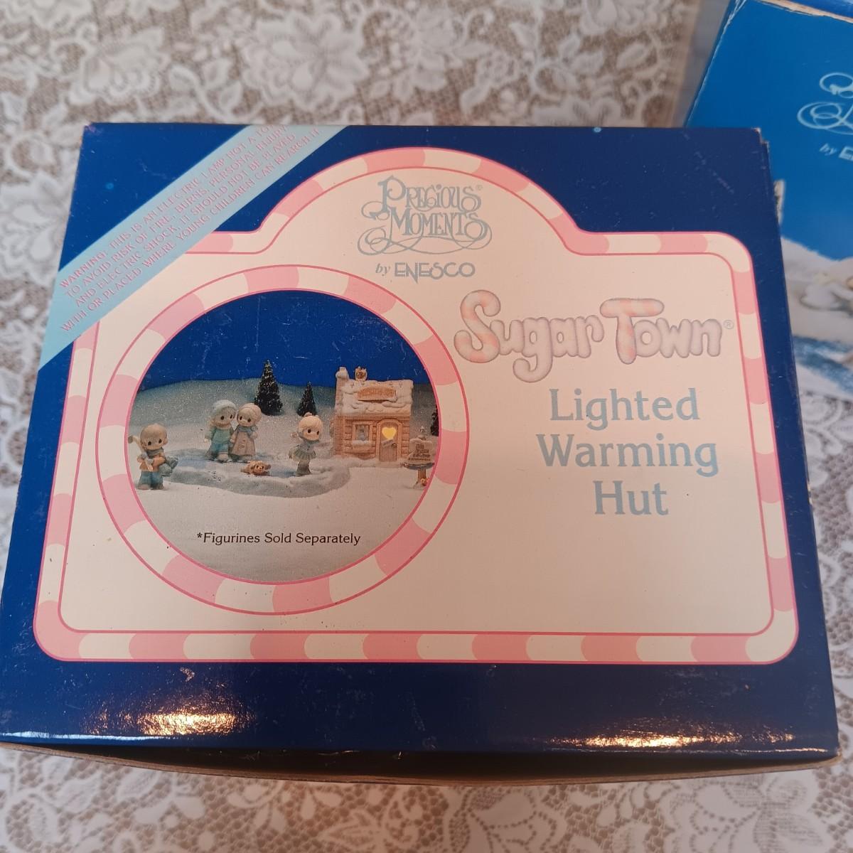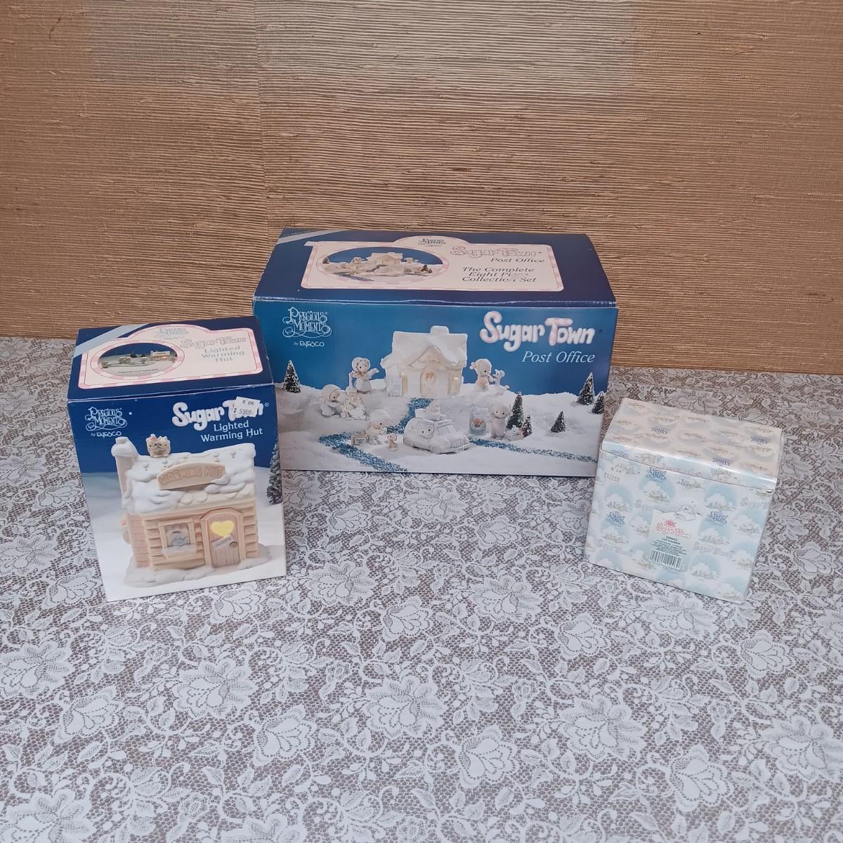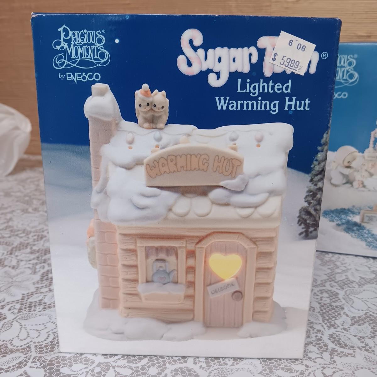 SUGAR TOWN POST OFFICE, CAR FIGURINE & LIGHTED WARMING HUT