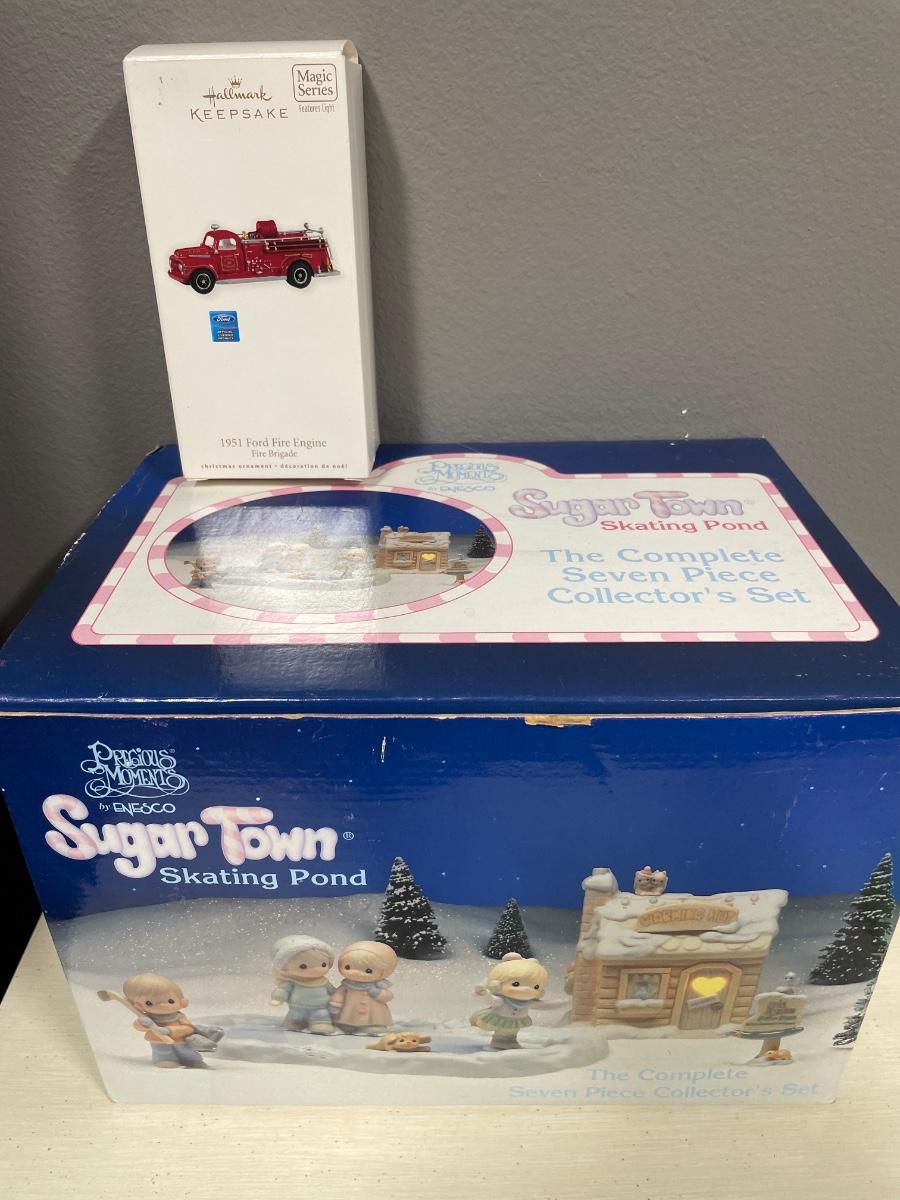 Precious moments, Sugartown, skating pond in box