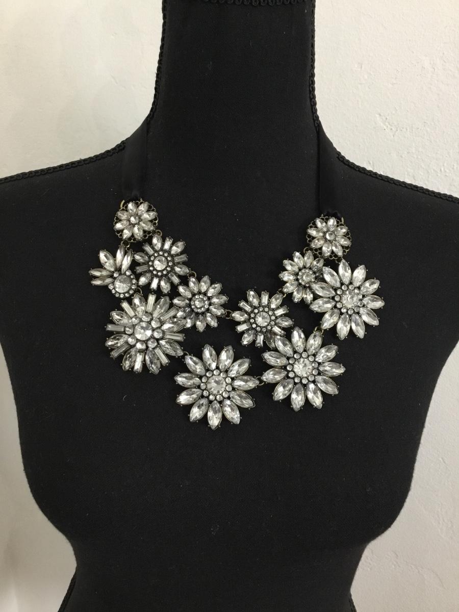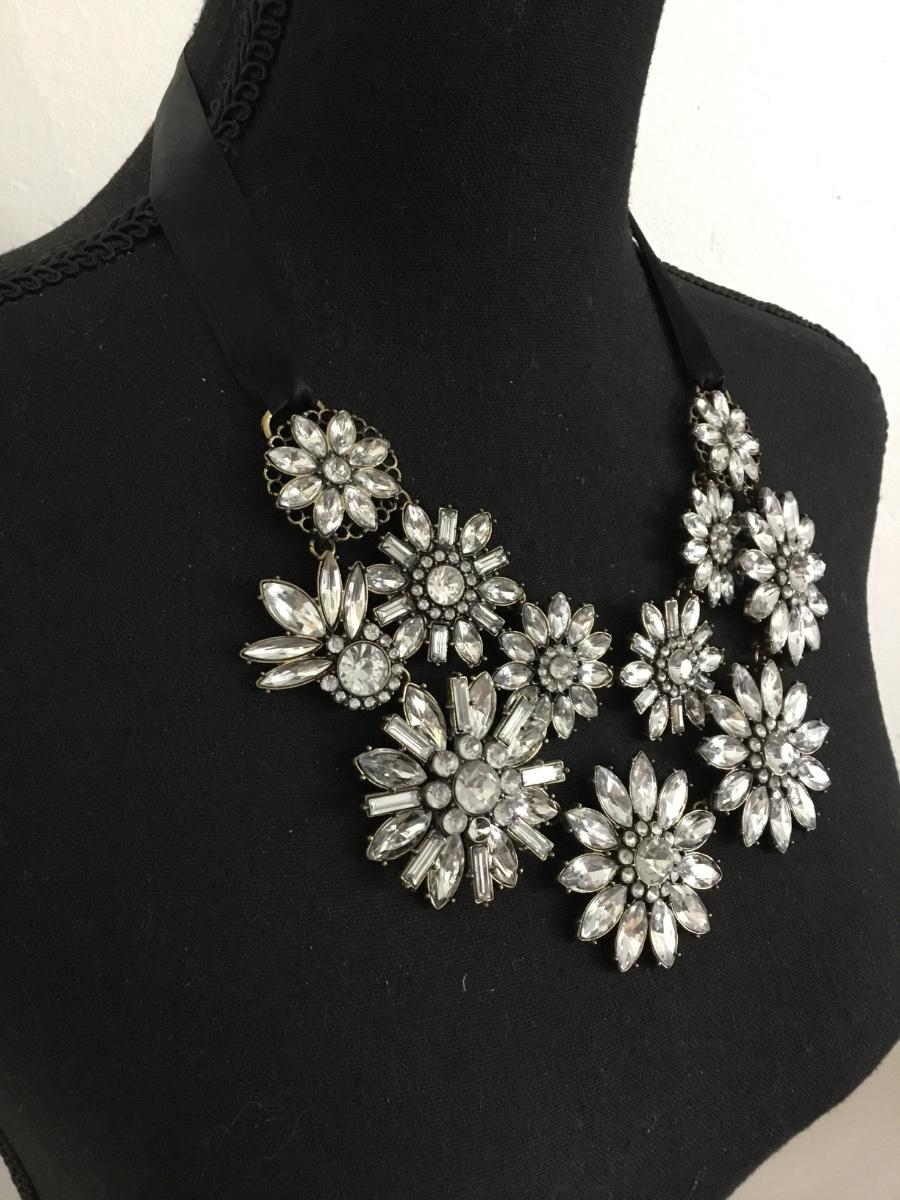 Sugarfix Silk ribbon bronze and rhinestone flower, large statement, necklace