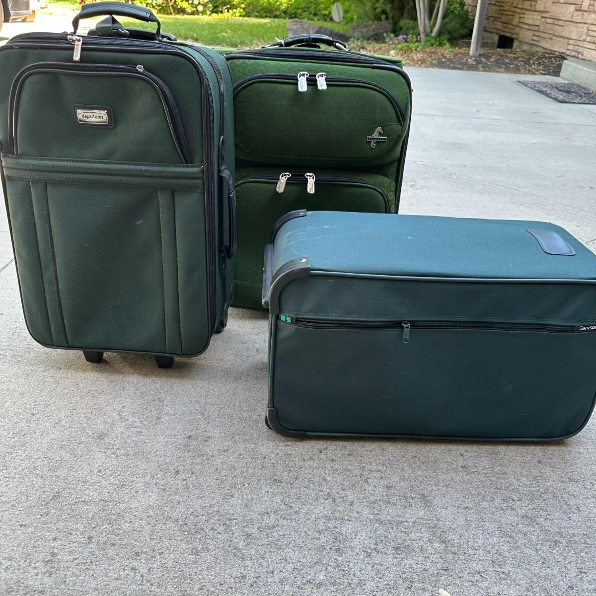 3 carry on friendly suitcases in good used condition. Some wear and tear but interiors are clean.