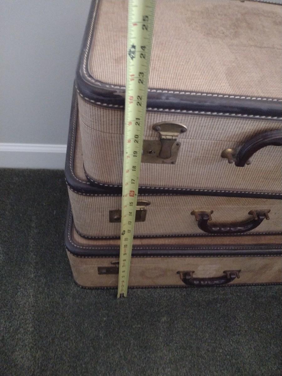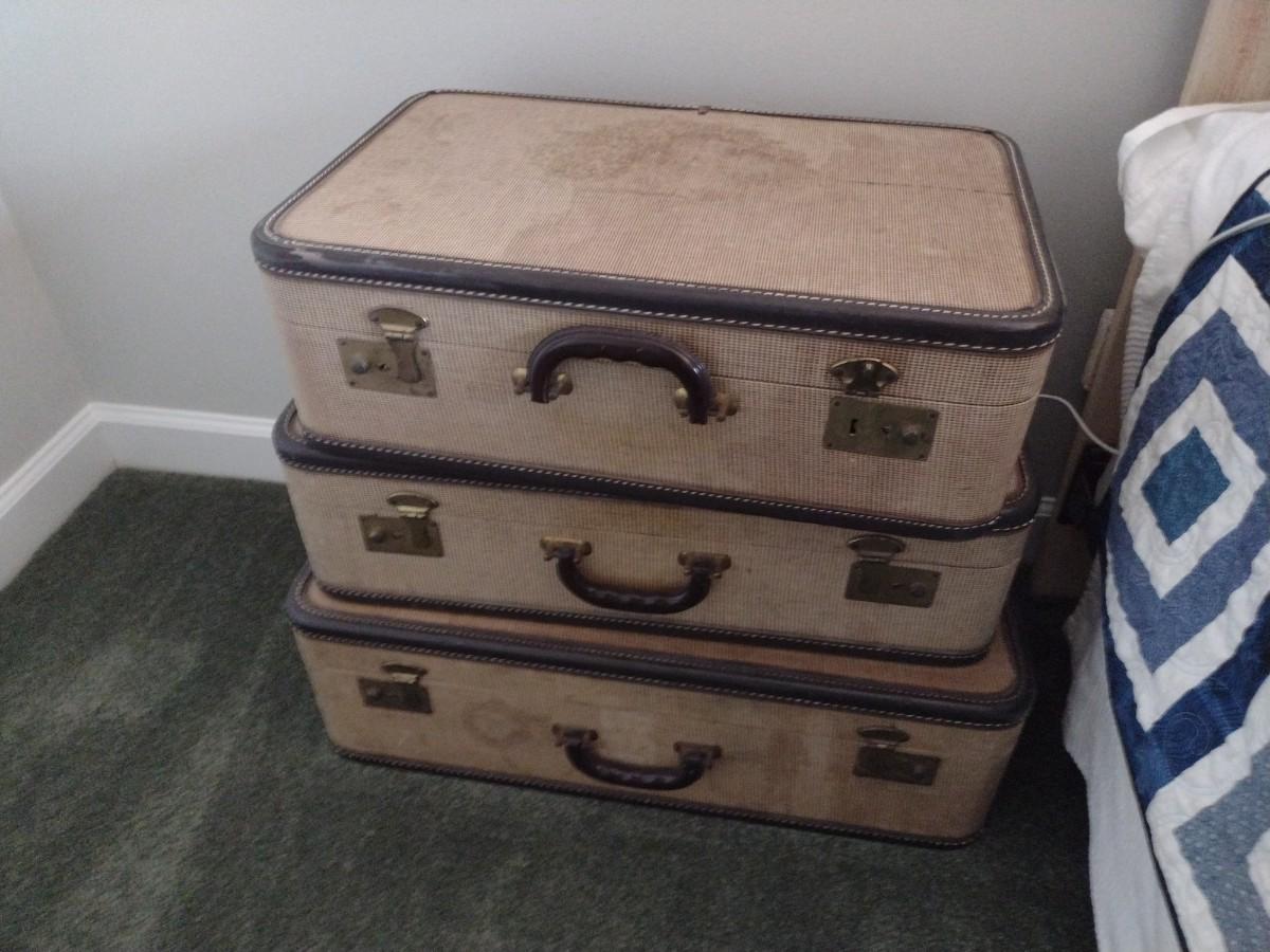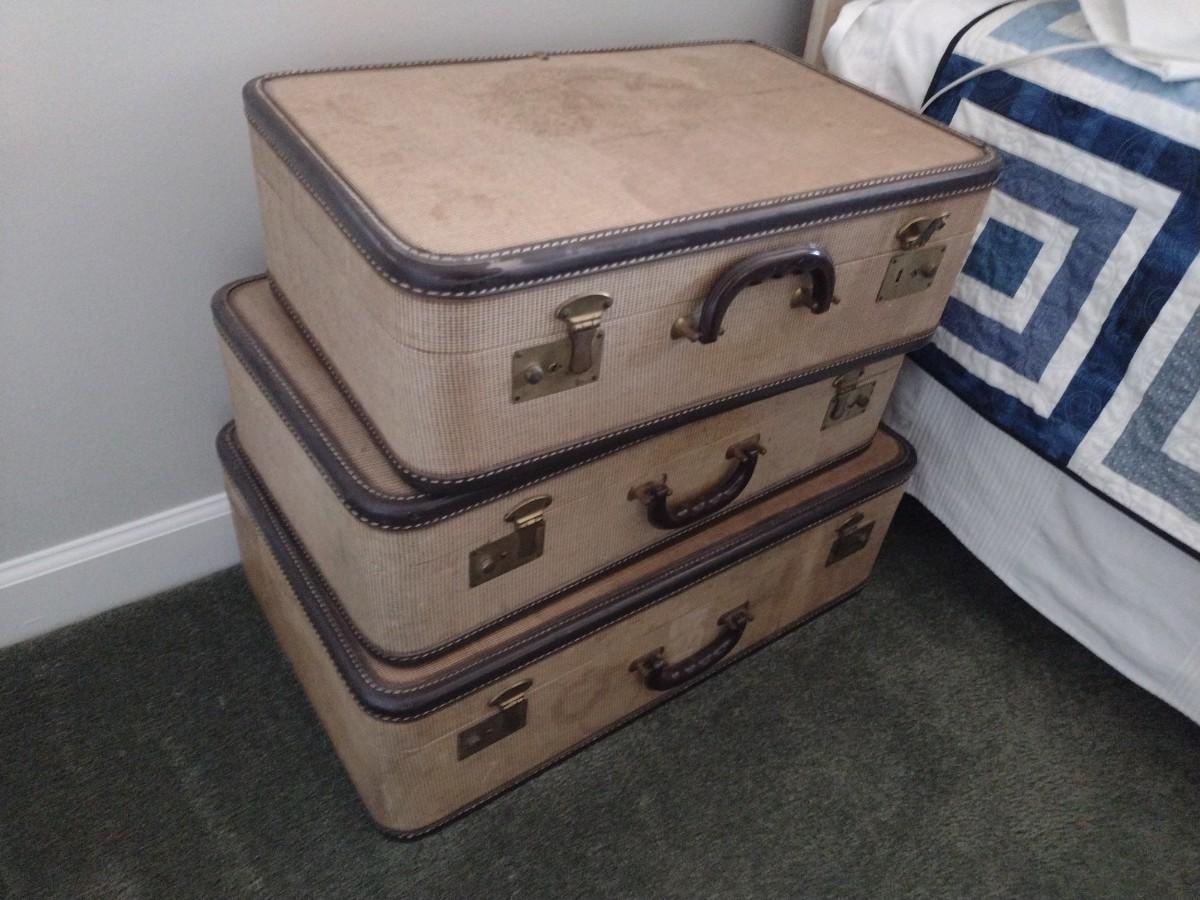Set of Vintage Fabric Suitcases Being Sold as Home Accent Pieces upstairs item