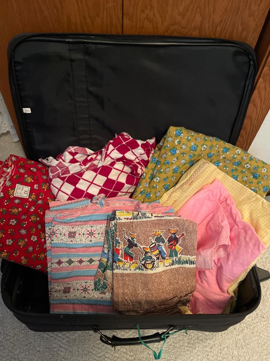 Suitcase with vintage fabric