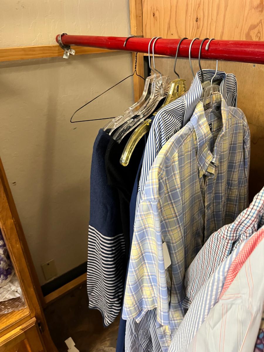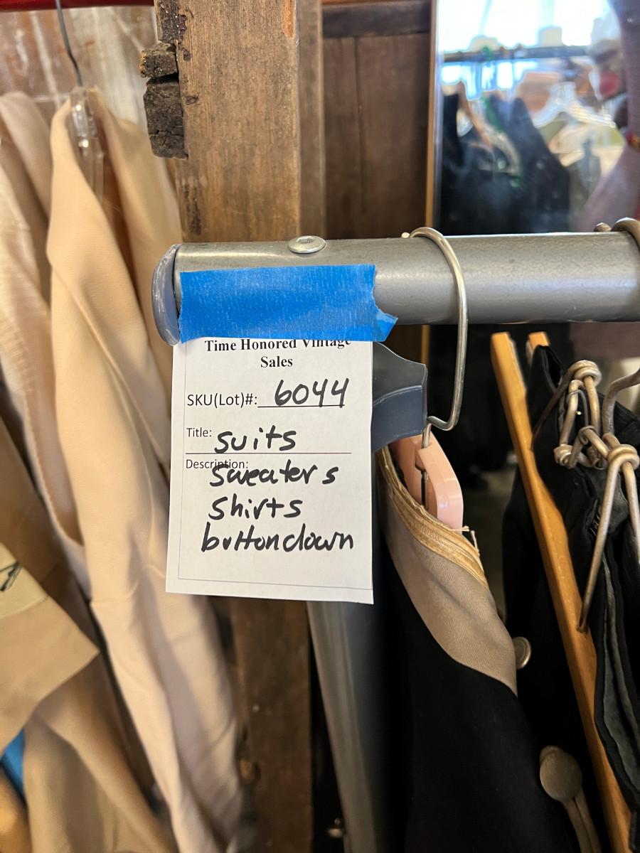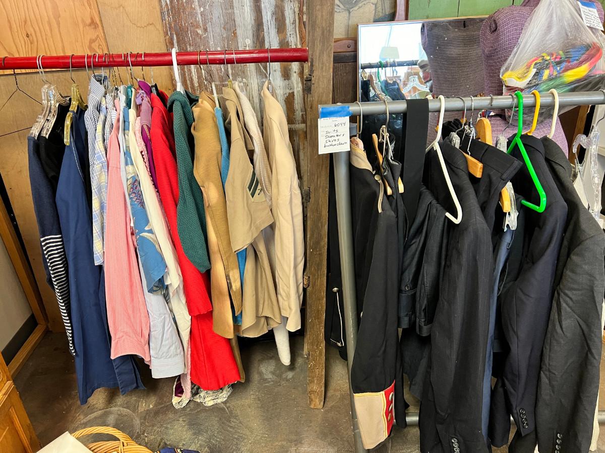 Some of these nice quality items came from the estate of an alterations specialist, so may have areas she has marked for repair.Some of the slacks still have new tags on Uniform shirts, boy scout and drum corp Cashmere sweaters, button down long and short sleeve, Hawaiian shirts. garment rack not included, see lot 6042 for that.