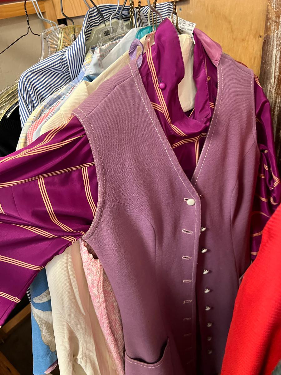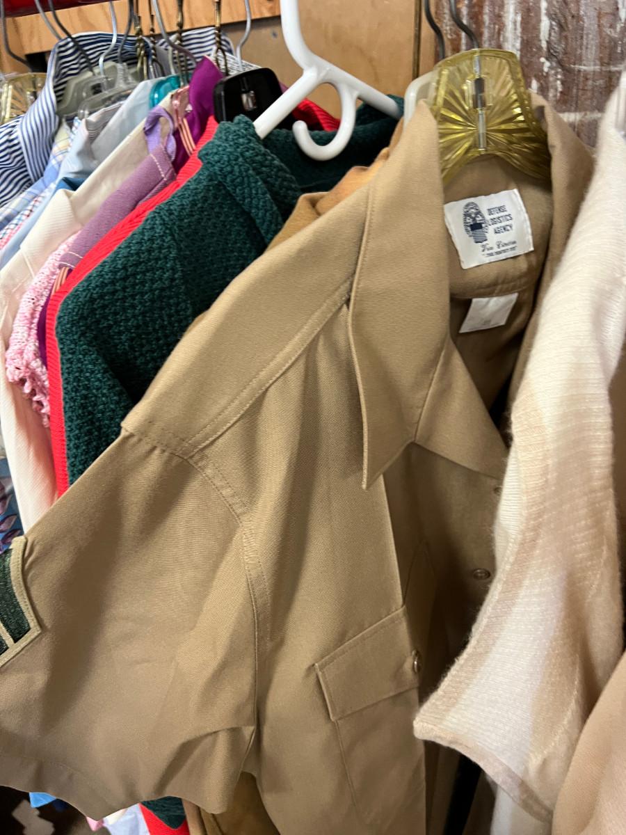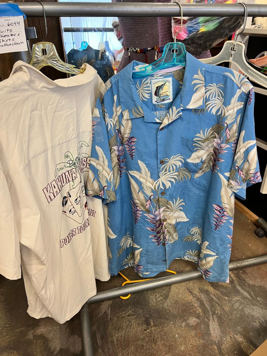 Some of these nice quality items came from the estate of an alterations specialist, so may have areas she has marked for repair.Some of the slacks still have new tags on Uniform shirts, boy scout and drum corp Cashmere sweaters, button down long and short sleeve, Hawaiian shirts. garment rack not included, see lot 6042 for that.