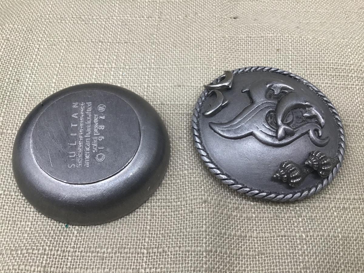 SULITAN 1982 Hand Crafted Solid Pewter Dolphin ¬ Trinket Box with Earrings