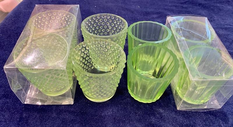 “¢4 lime Green Glass stipe Votive Candle holders by Luminiecense