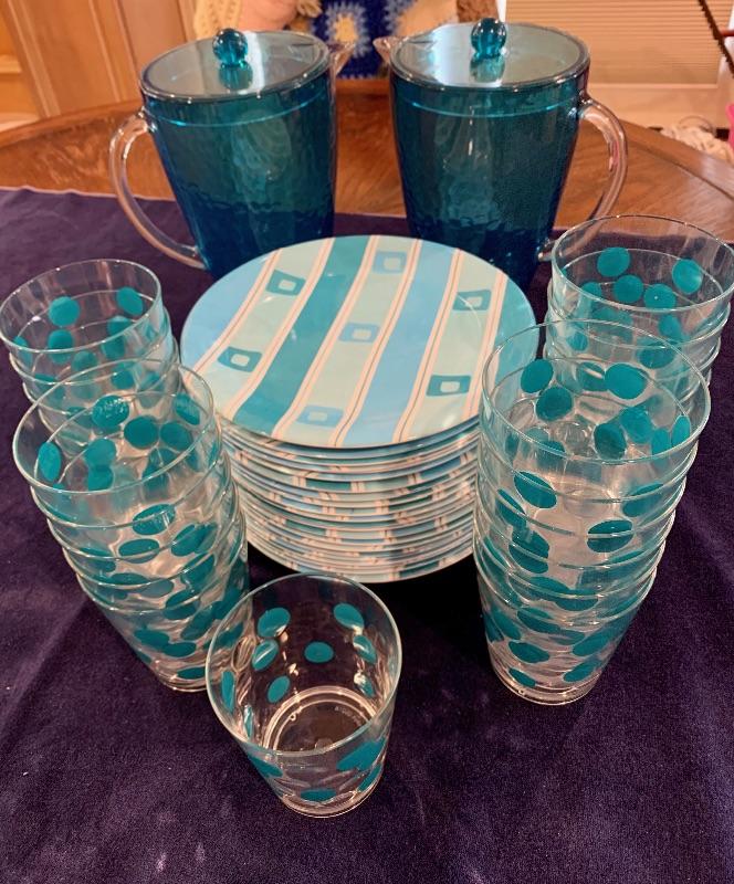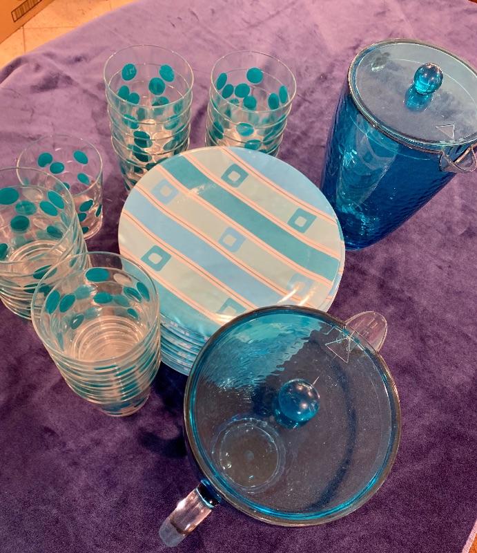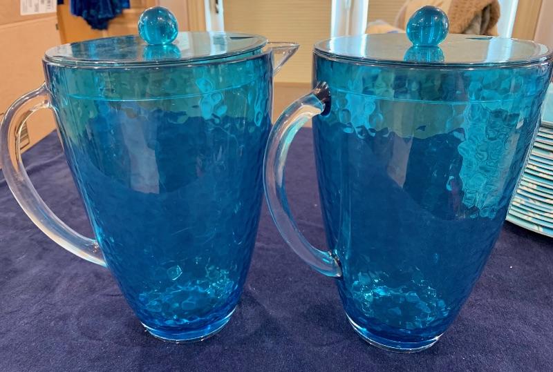 2 Blue Plastic Pitchers