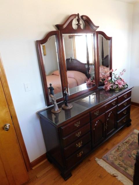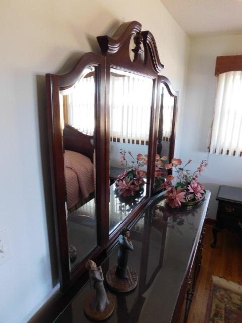 Sumter Cabinet Co.  Solid Cherry Designer Dresser with Triple Mirror 70" x 35"