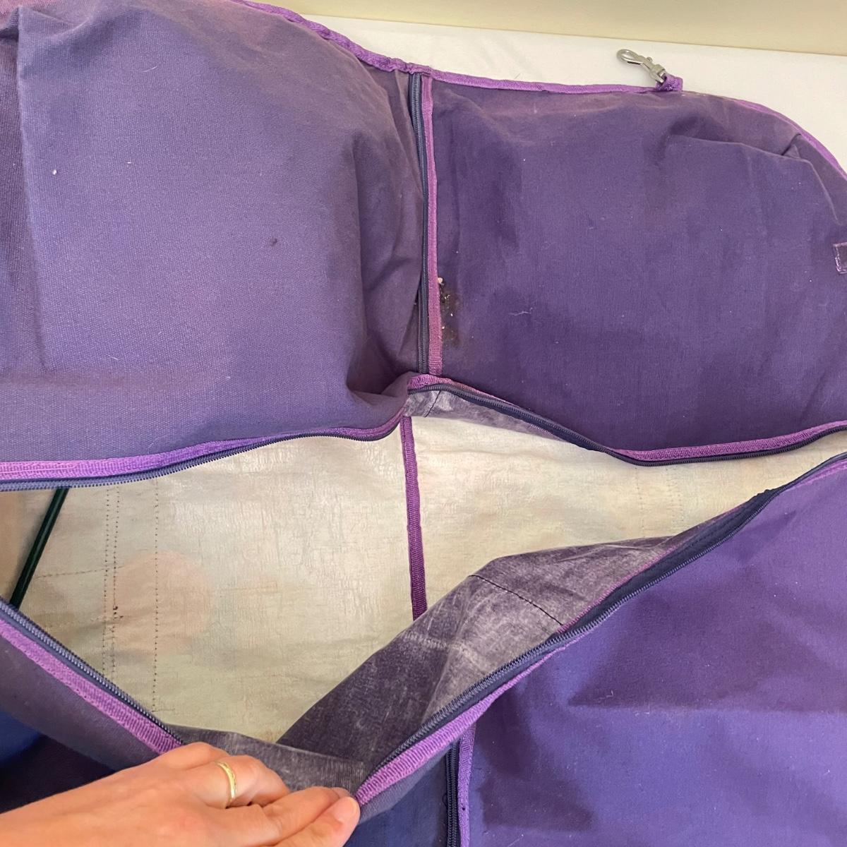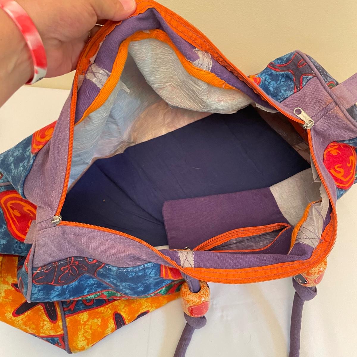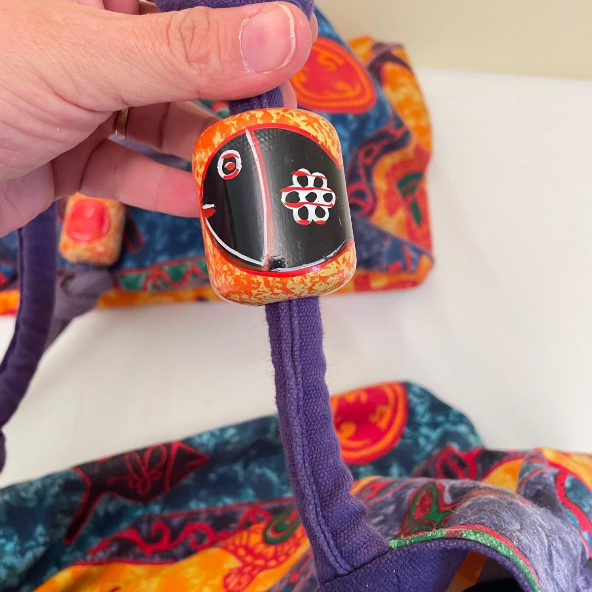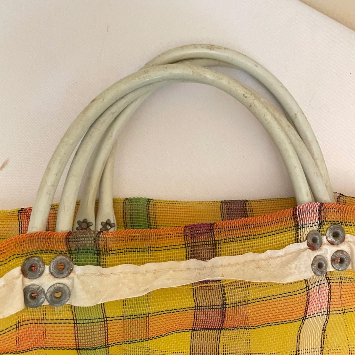 A six-piece set by Sun and Sand includes a sarong, large and small totes and bags plus a small garment bag. Lot also includes a large mesh tote that feels like plastic and another shell bag by Sun and Sand. Items show some fading and a couple need a good cleaning. See images. The yellow mesh tote measures 24” x 23” while lying flat, the garment bag laid out measures 27” x 36”. Local pick up only.