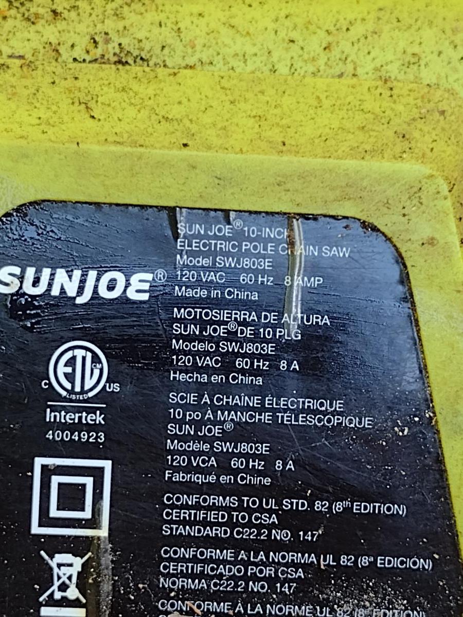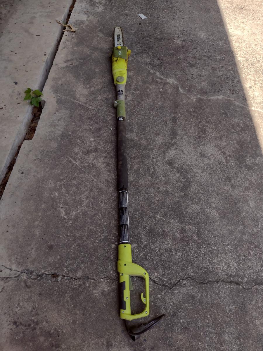 Sun Joe 10 Inch Electric Pole Chain Saw. Item appears to be in working condition.