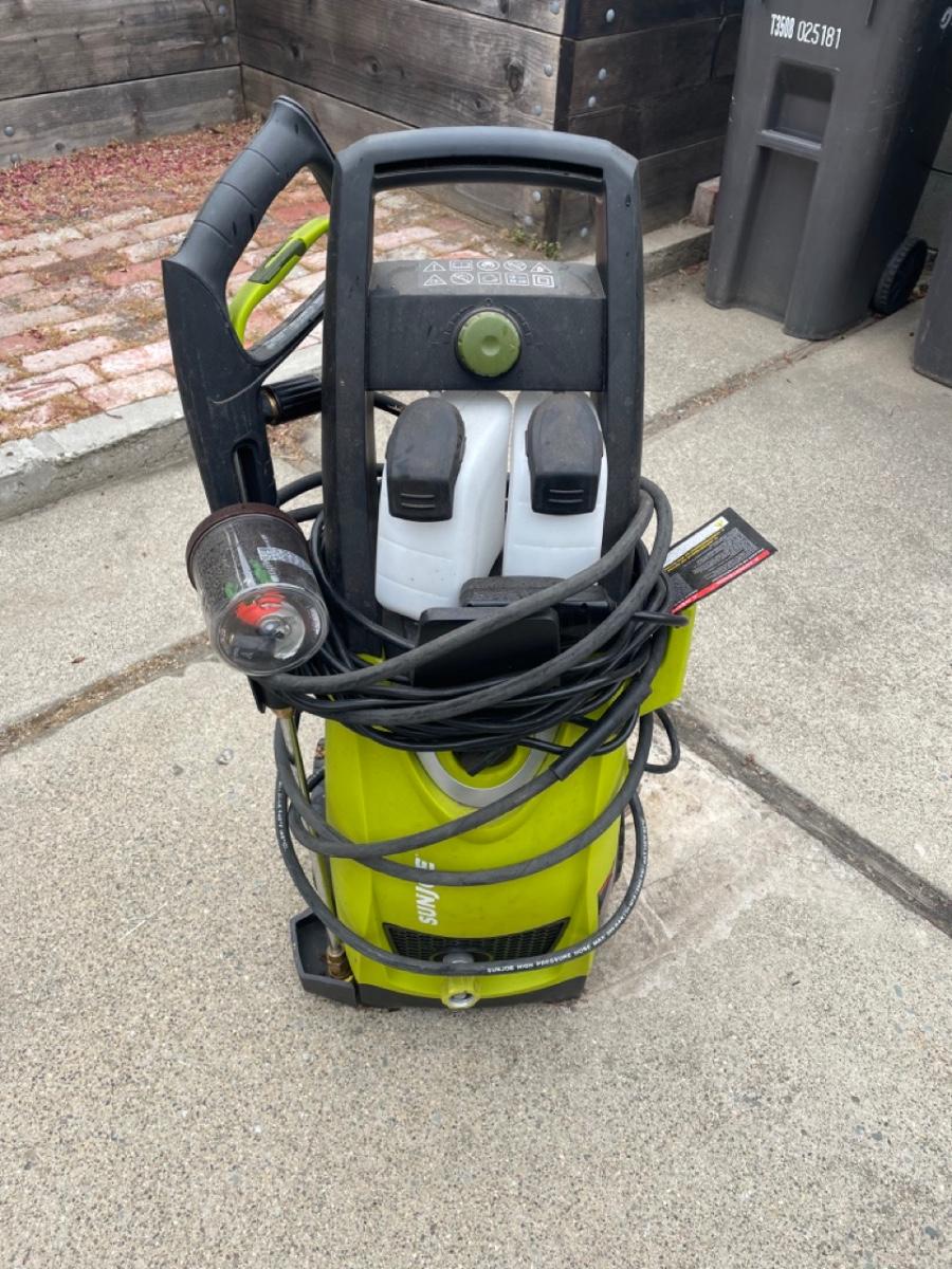 Turns on. Seems to have all the attachments. Two detergent containers.