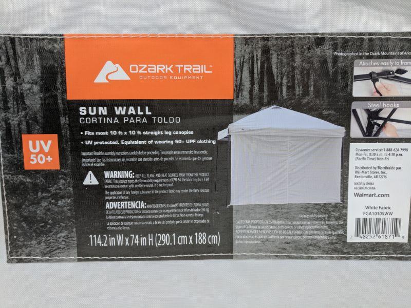 Sun Wall, Ozark Trail, Fits Most 10x10 ft Straight Leg Canopies, UV, White - New