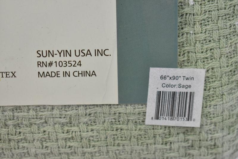 Sun Yin Thermal Cotton Bed Blanket, Twin. Sage Green, $18 Retail - New