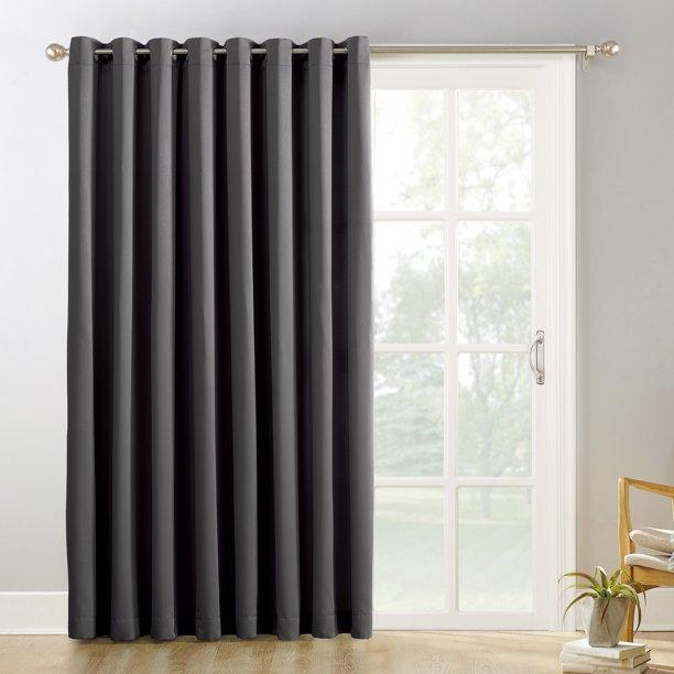 Sun Zero Conrad Extra-Wide Blackout Sliding Patio Door Curtain Panel. 8 feet wide, 80" long, Gray. No packaging. Condition is New