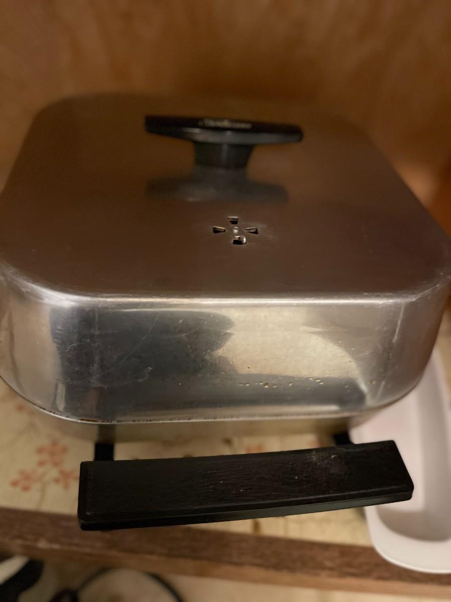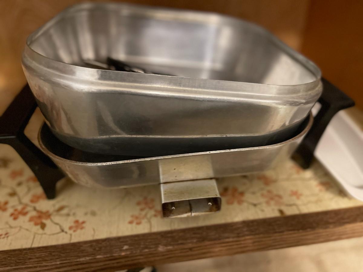 Electric Sunbeam Frypan, Not Tested. Platic Food Containers, Leonard Italy Towle Silverplate Ladle
