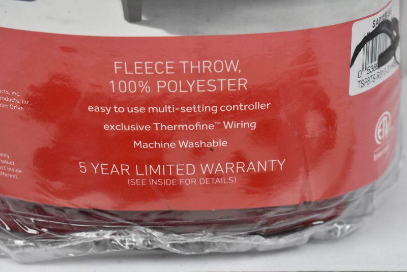 Sunbeam Heated Electric Fleece Throw Blanket, 60" x 50", Garnet Red - New