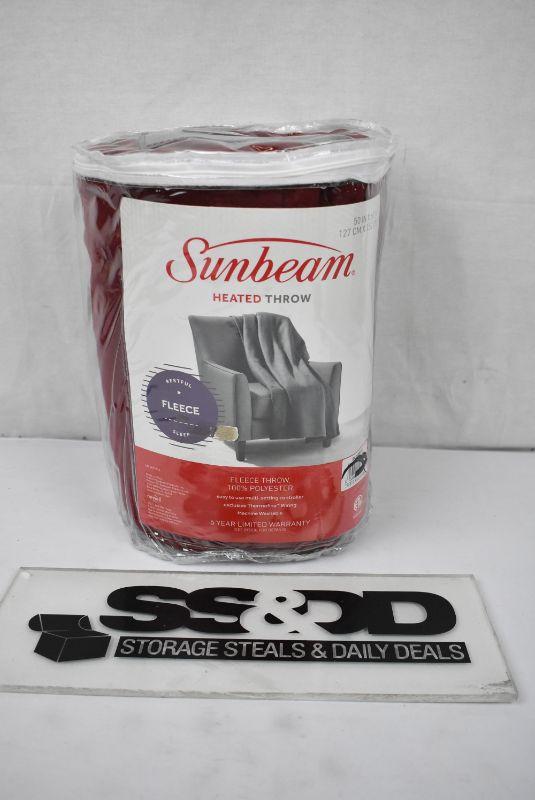 Sunbeam Heated Electric Fleece Throw Blanket with 3 heat settings, 60" x 50", Garnet Red - New