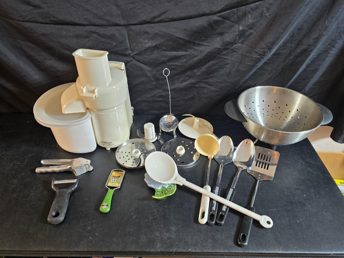 Sunbeam Oskar food processor - Assortment of kitchen utensils - strainer - and more