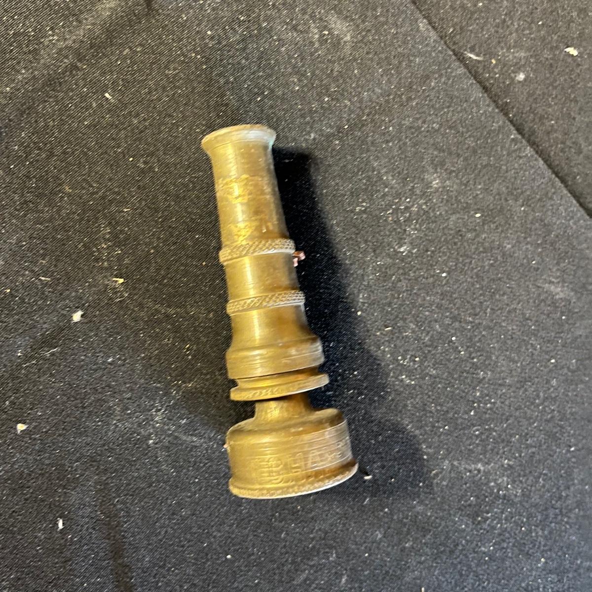 Lot includes a Sunbeam Rain King model # K-4 vintage metal sprinkler, Tru Test vintage metal sprinkler and a brass spray nozzle. Largest sprinkler measures 10” x 12” x 8.5”.