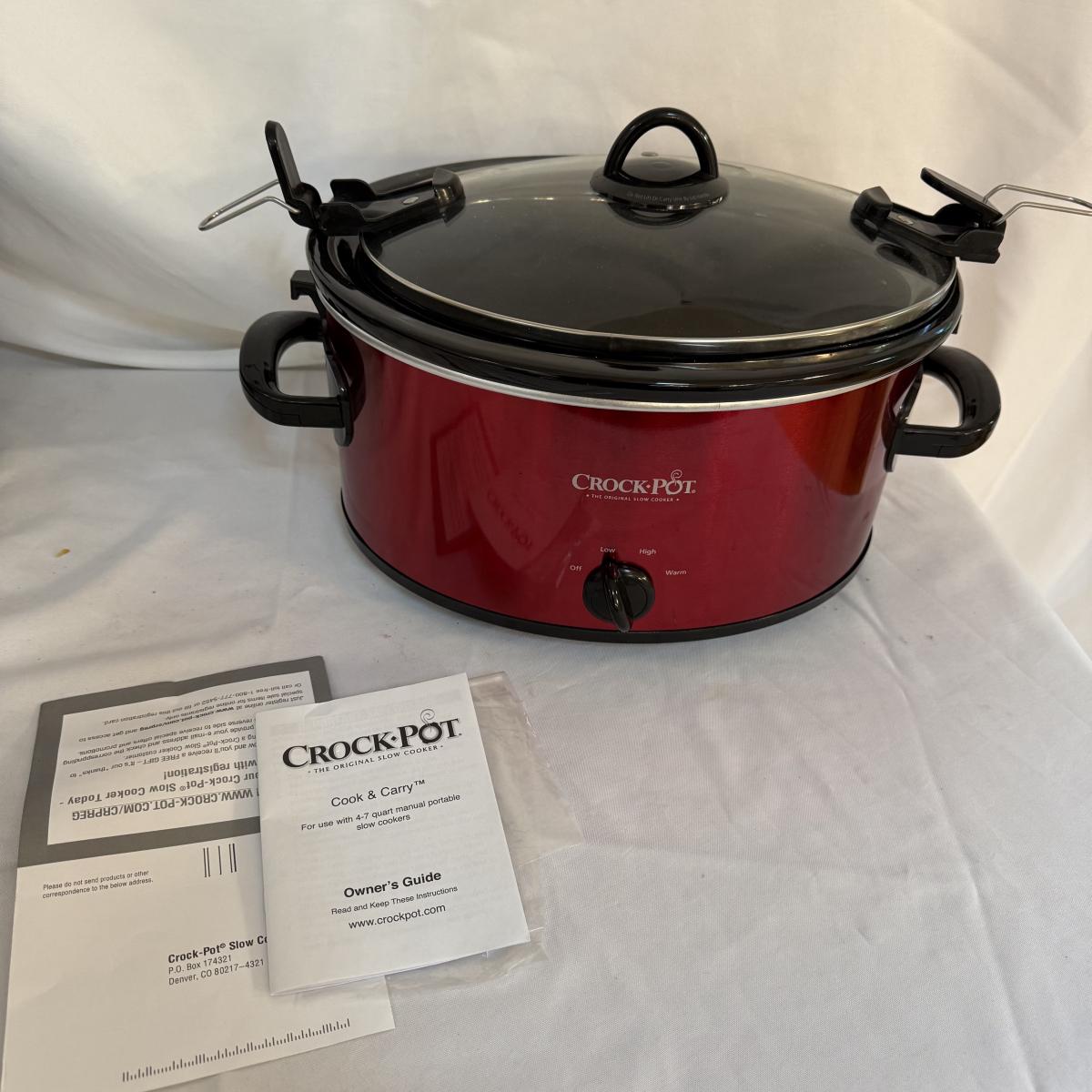 This lot contains a Sunbeam toaster-oven and a Crock-pot slow cooker. Both items do power on. The toaster-oven measures 14”x 8” x 8.25”H. The Crock-Pot comes with its owners manual and measures approximately 14” x 12” x 9.5”H. See pictures for details. Shipping available.