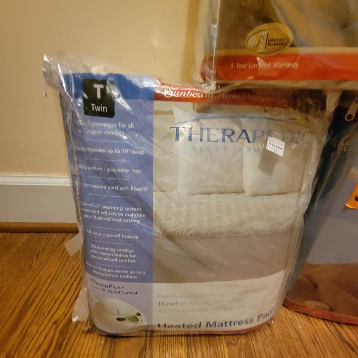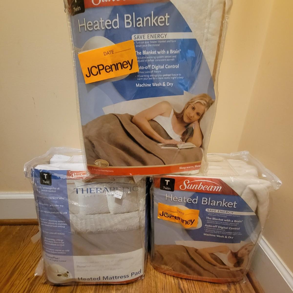 Two twin heating blankets and one heating pad, also twin. All 3 are new and unused in original packaging. Local pickup only