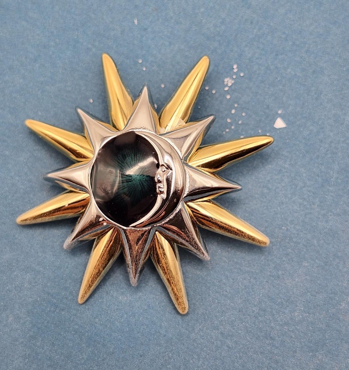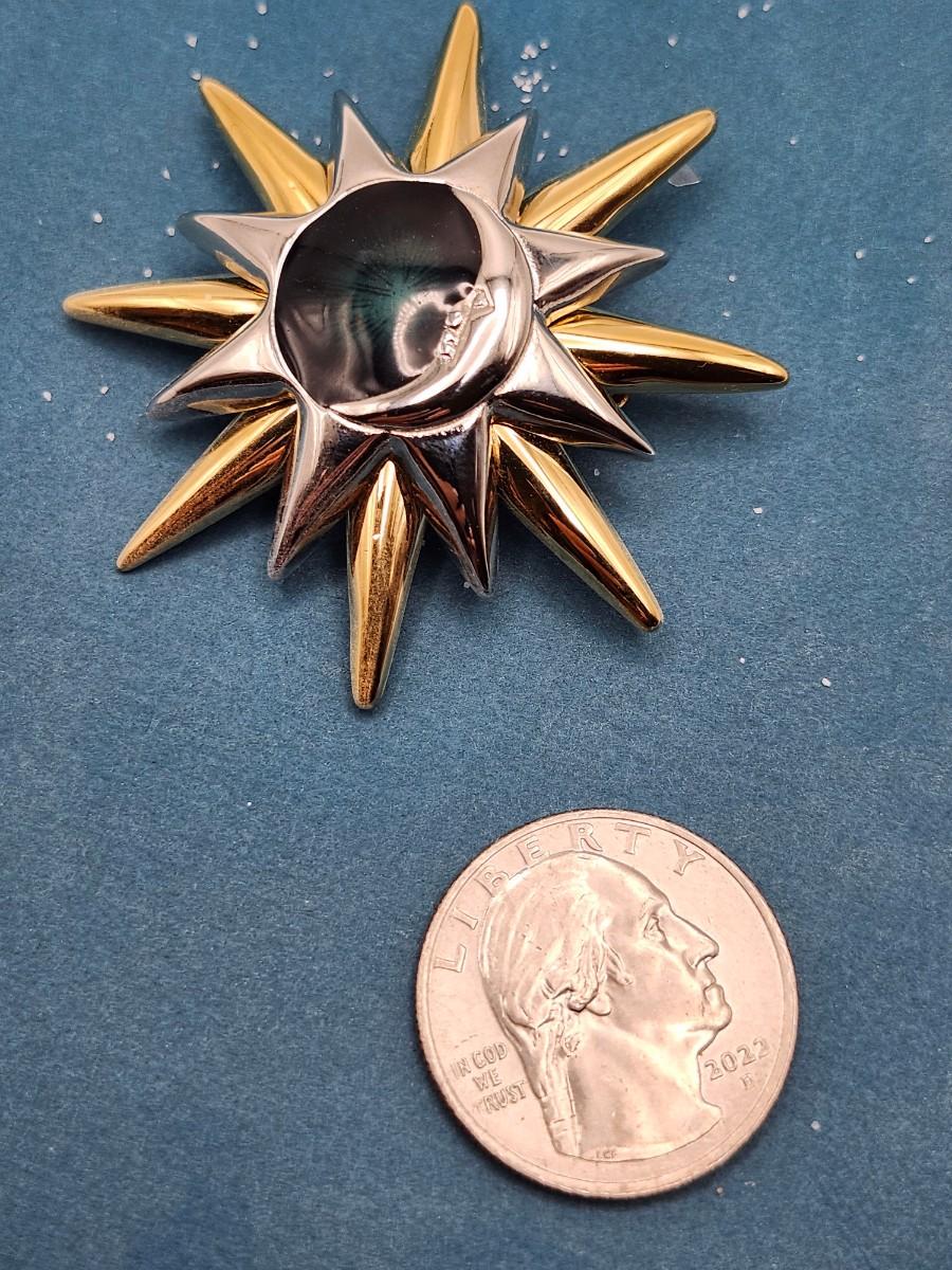 Sunburst Crescent Moon Pin