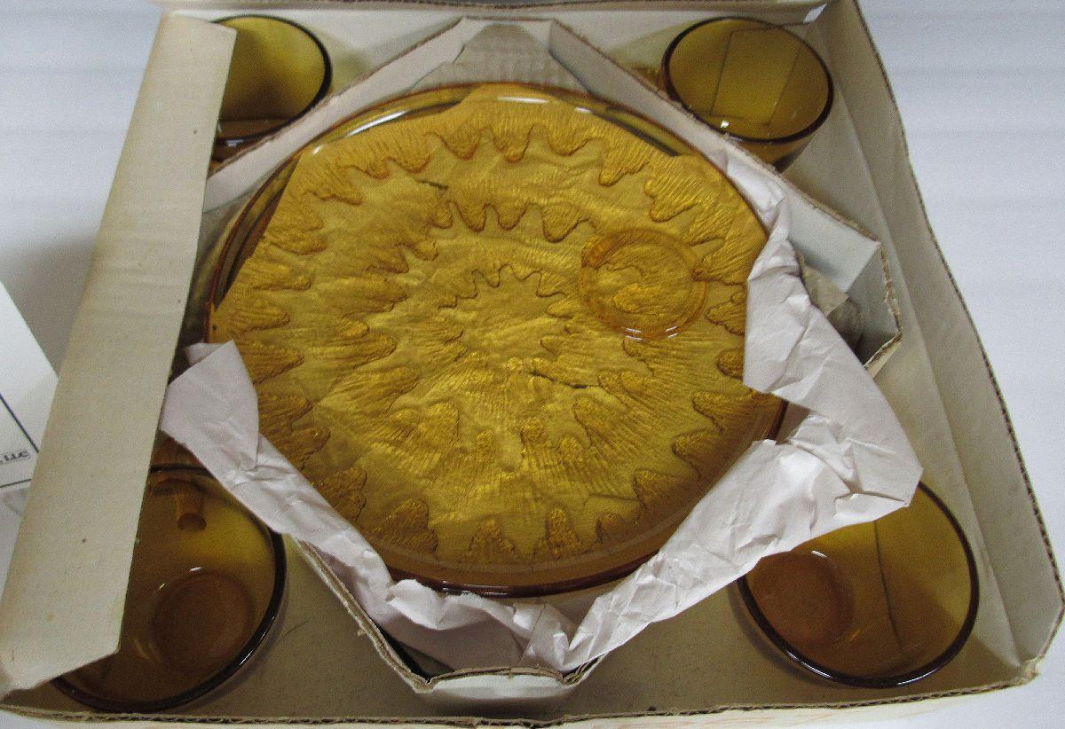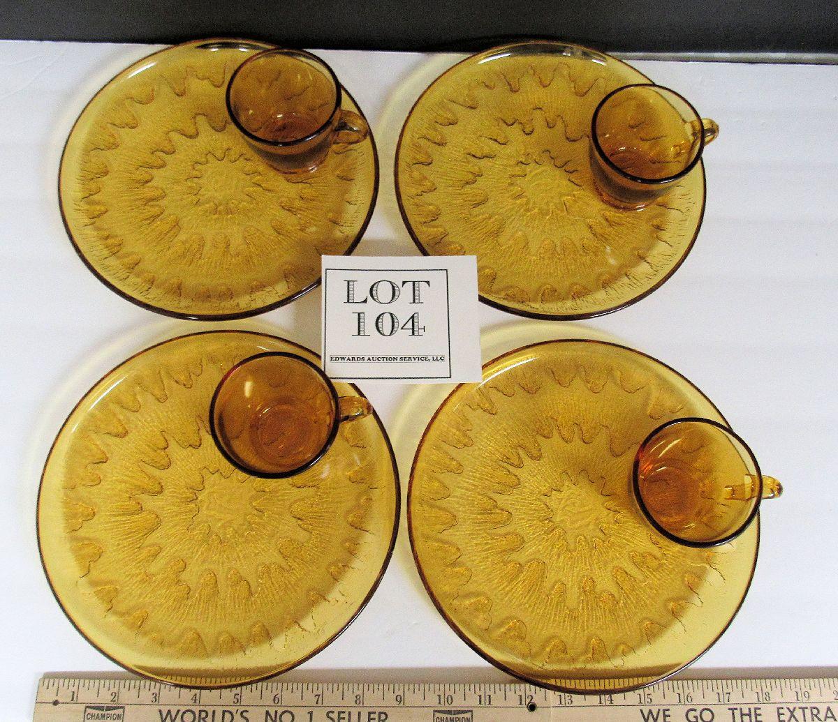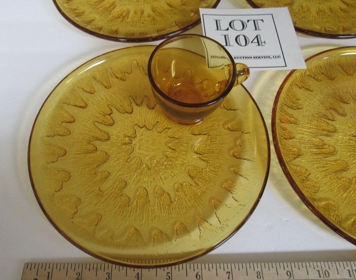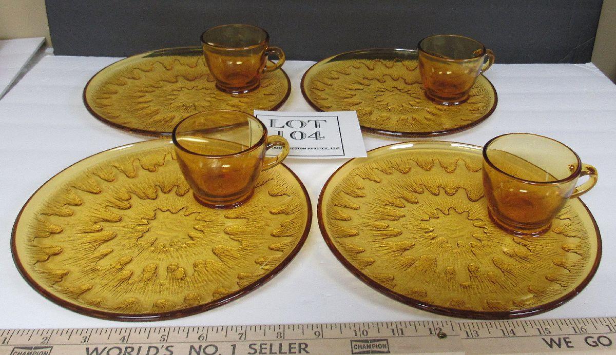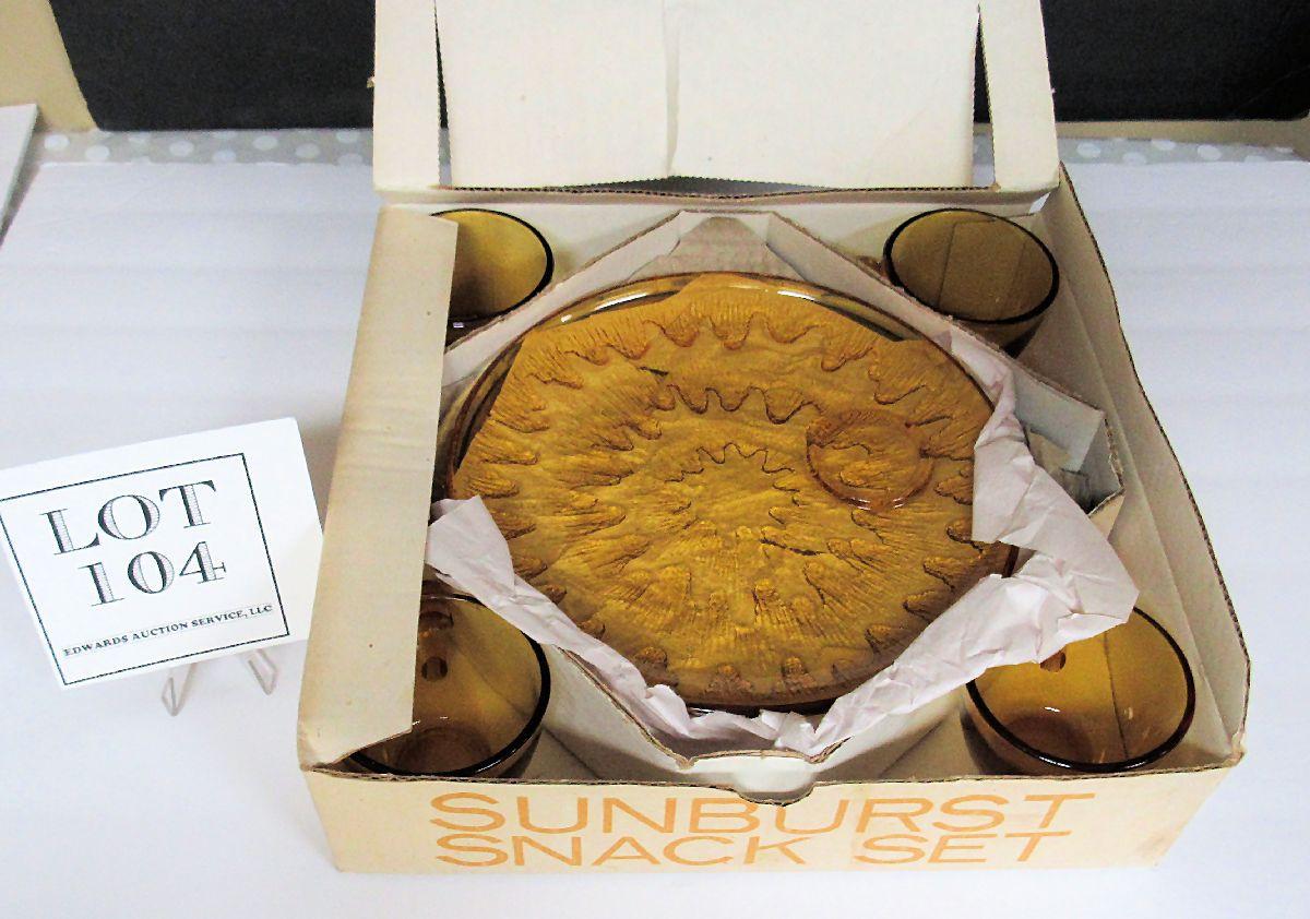 Sunburst Pattern Snack Sets, Indiana Glass Co, In Box
