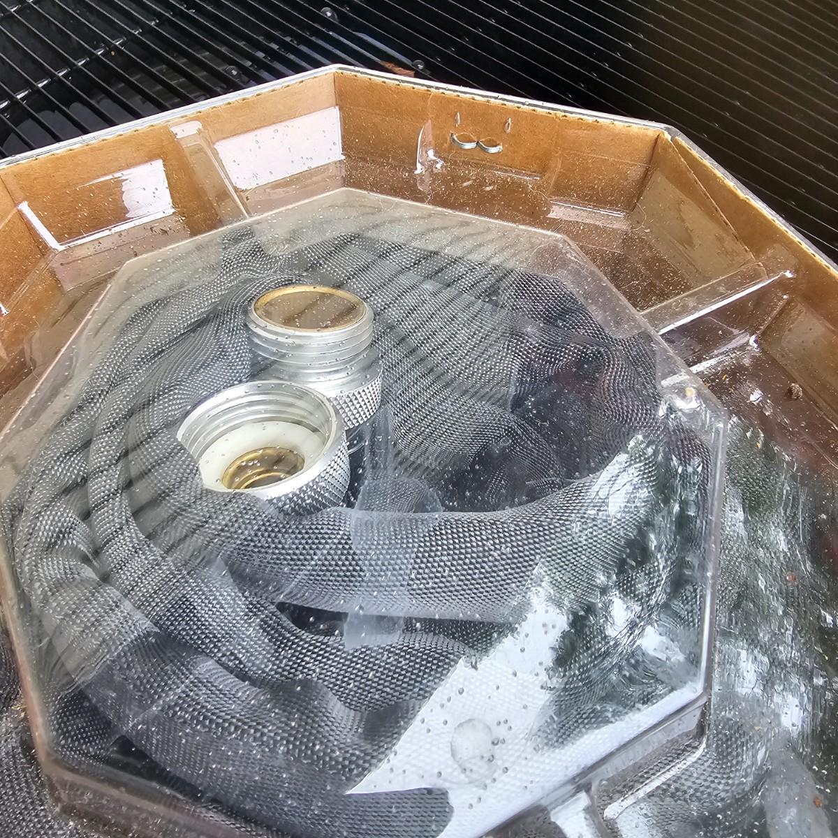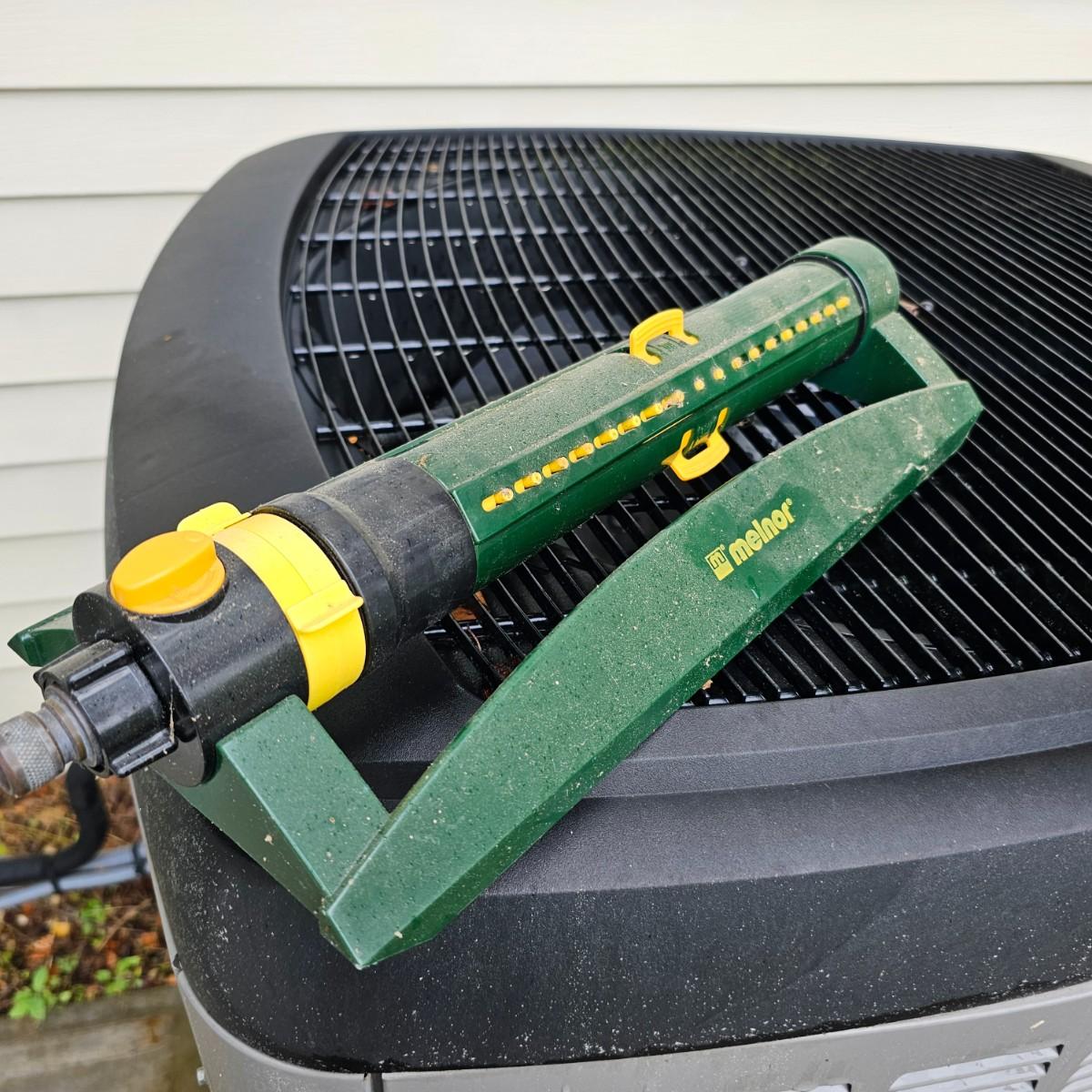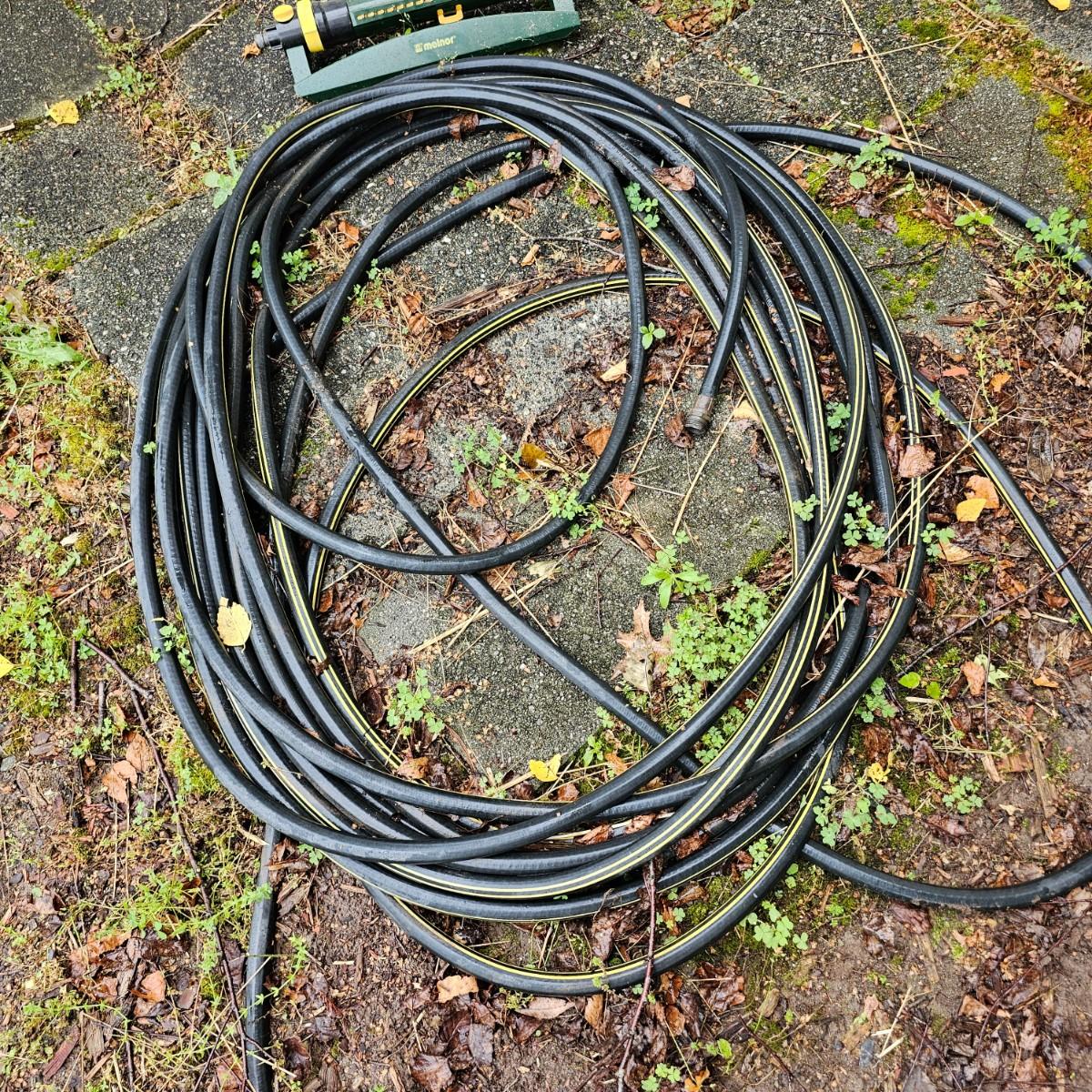 One plastic wind up hose cart by Suncast. Piece has plastic wheels and handle, attachment hose on side. Also includes one Melnor wave type sprinkler, one Zero-G 50 ft collapsible hose and another standard 50 ft length of garden hose. See photos for details. Local pickup only.