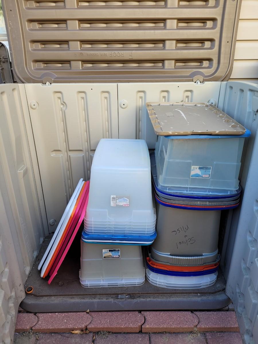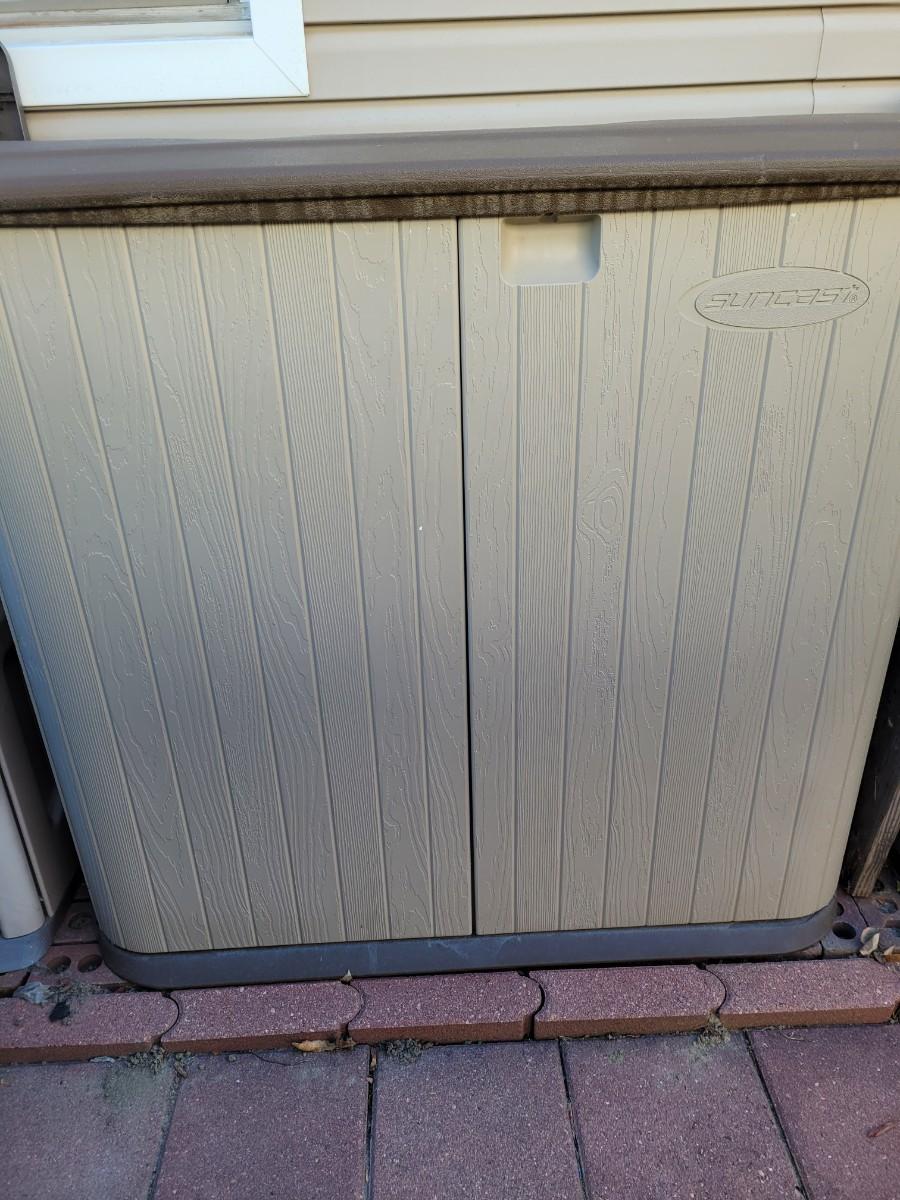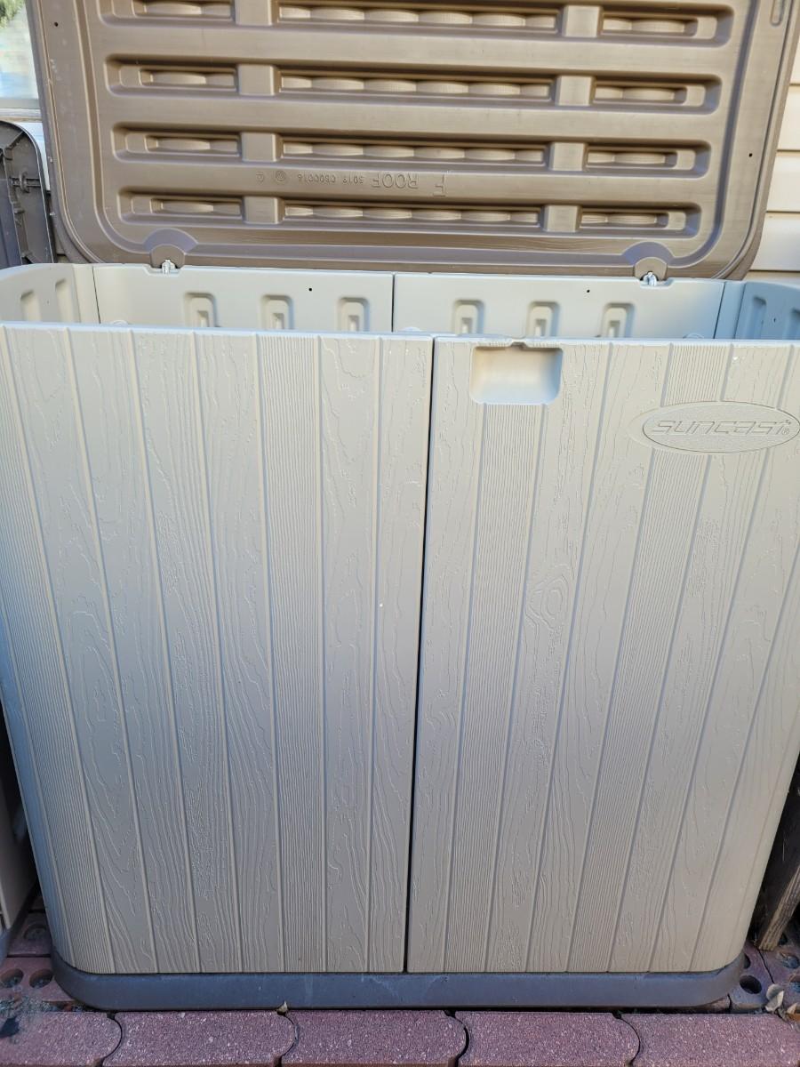 Suncast 2 door yard storage bin. 55x49x31 Used