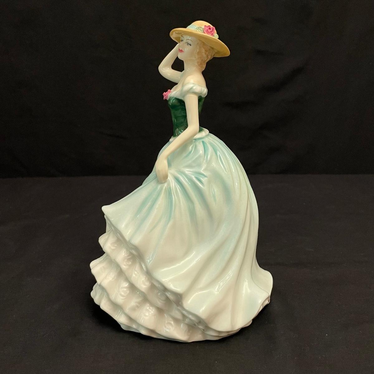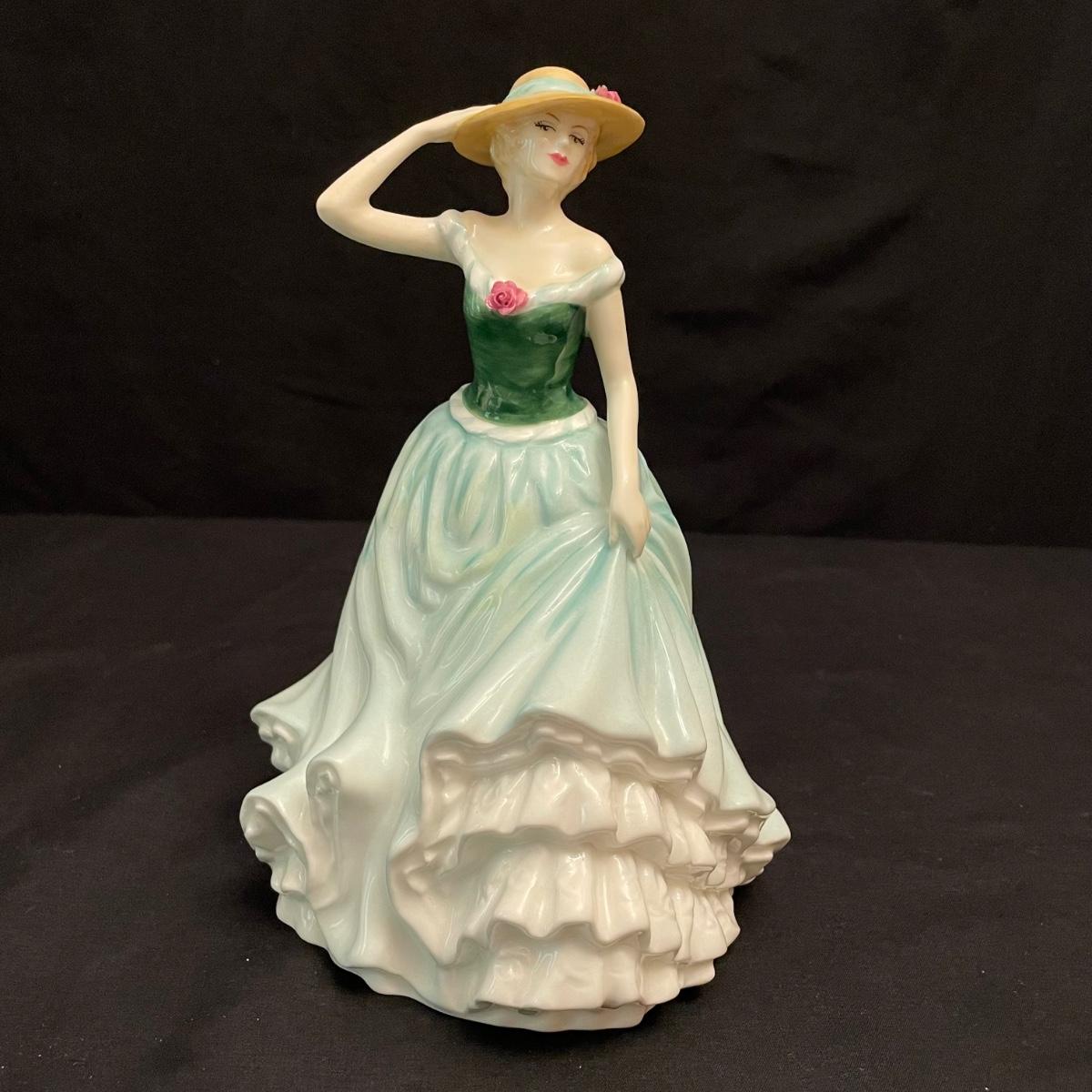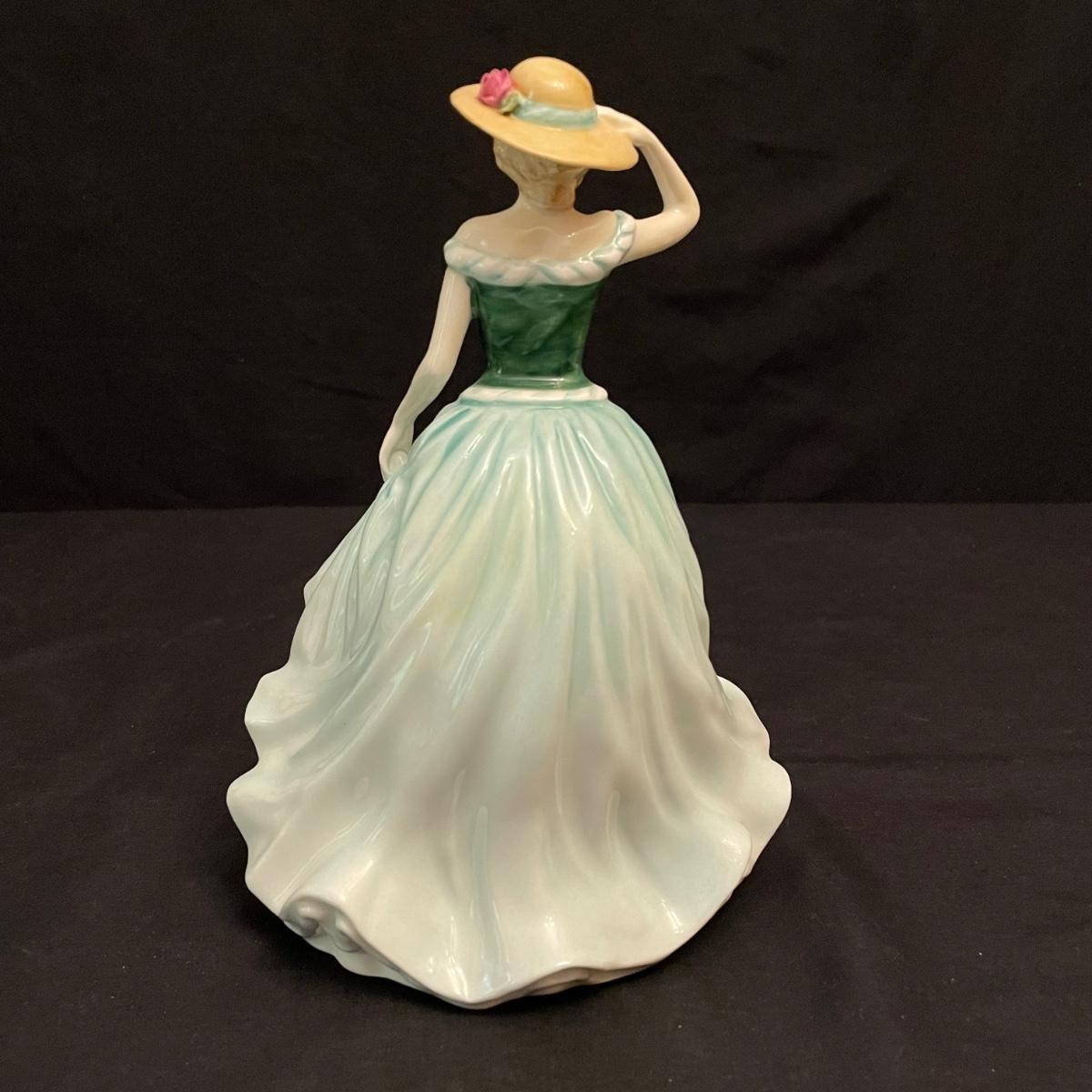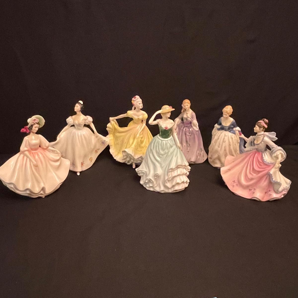 Seven lovely ladies by Royal Doulton. Figures include Sunday Best, Kate, Ninette, Nicola, Alison, Rebecca and Emily. Emily in the green dress is the tallest at 5.5” x 5.5” x 8.5”H, the rest are about an inch shorter. All figures appear to have been well cared for. See images. Shipping available.