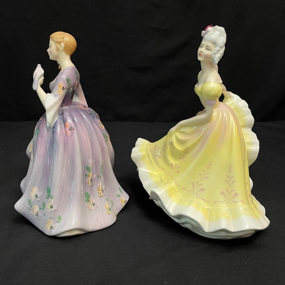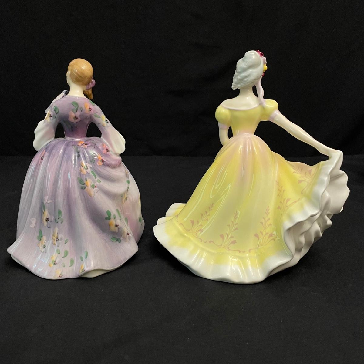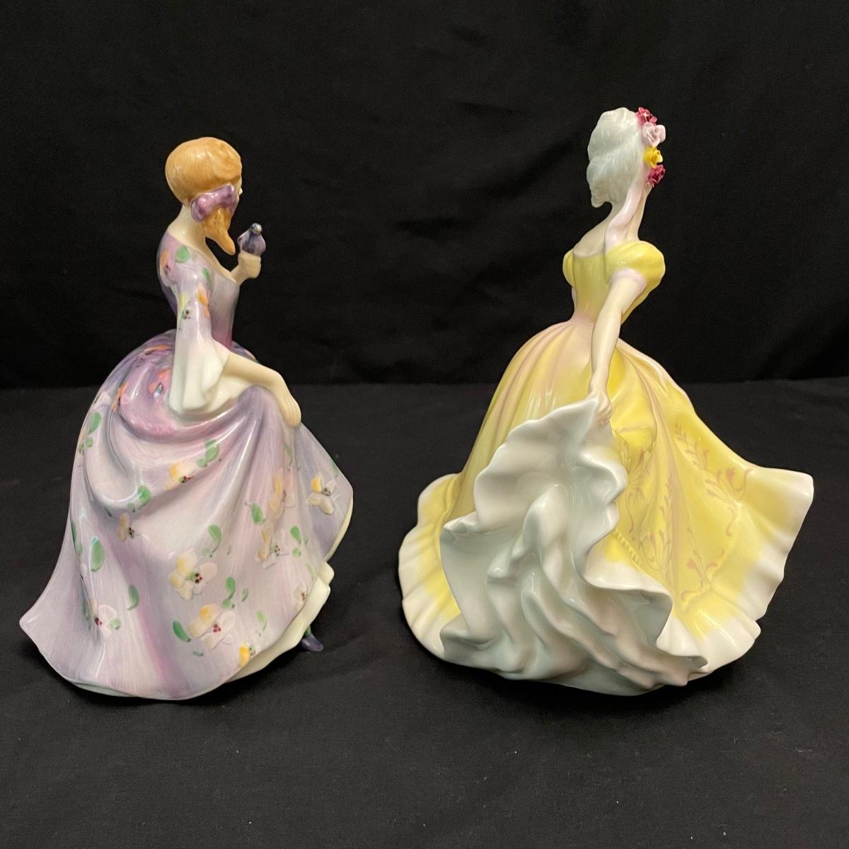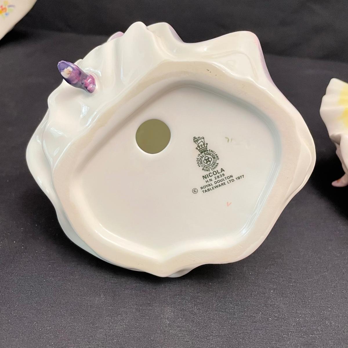Seven lovely ladies by Royal Doulton. Figures include Sunday Best, Kate, Ninette, Nicola, Alison, Rebecca and Emily. Emily in the green dress is the tallest at 5.5” x 5.5” x 8.5”H, the rest are about an inch shorter. All figures appear to have been well cared for. See images. Shipping available.