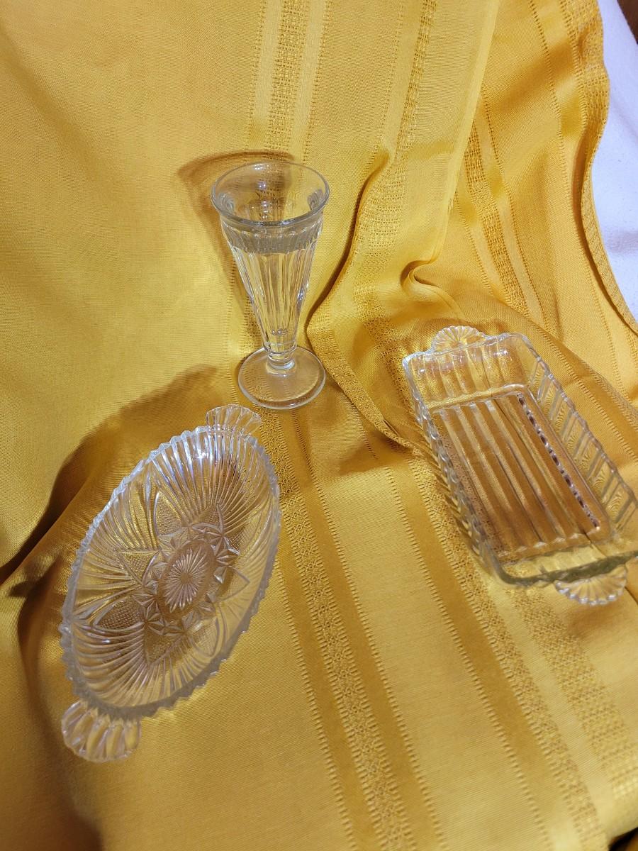 Sunday cup, butter dish and small crystal candy dish
