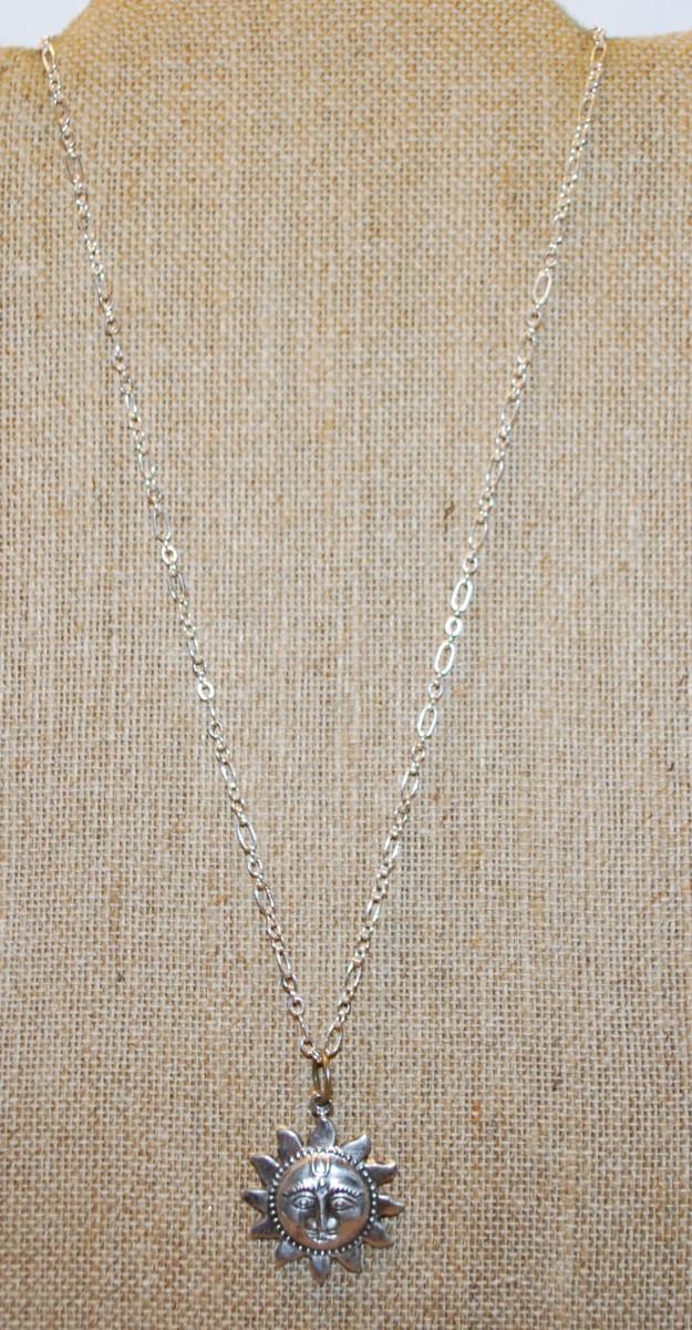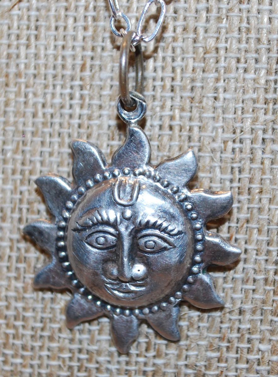 "Sundial" Style Silver .925 PENDANT (1" Diam.) on a Silver Tone Necklace Chain 19" L