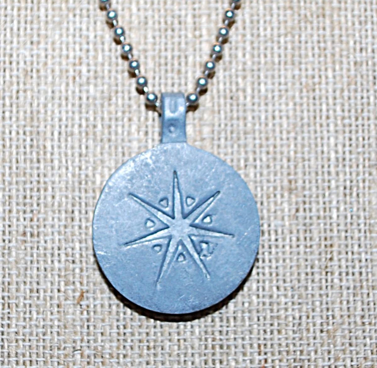 "SUNDISK" PENDANT NECKLACE with REVERSIBLE Star on Simple Silver Tone Necklace Chain 16" L