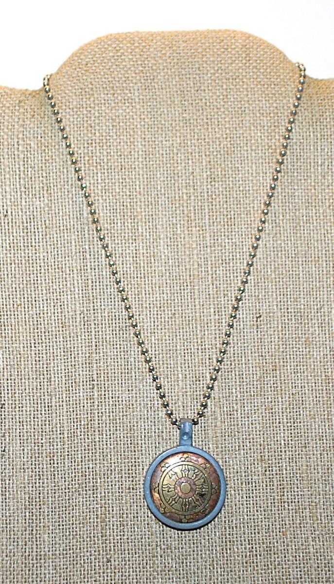 "SUNDISK" PENDANT NECKLACE with REVERSIBLE Star on Simple Silver Tone Necklace Chain 16" L