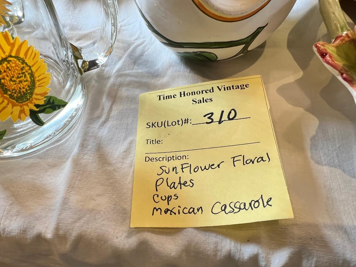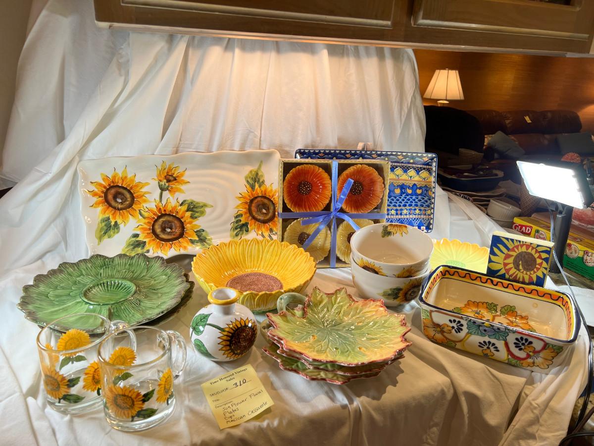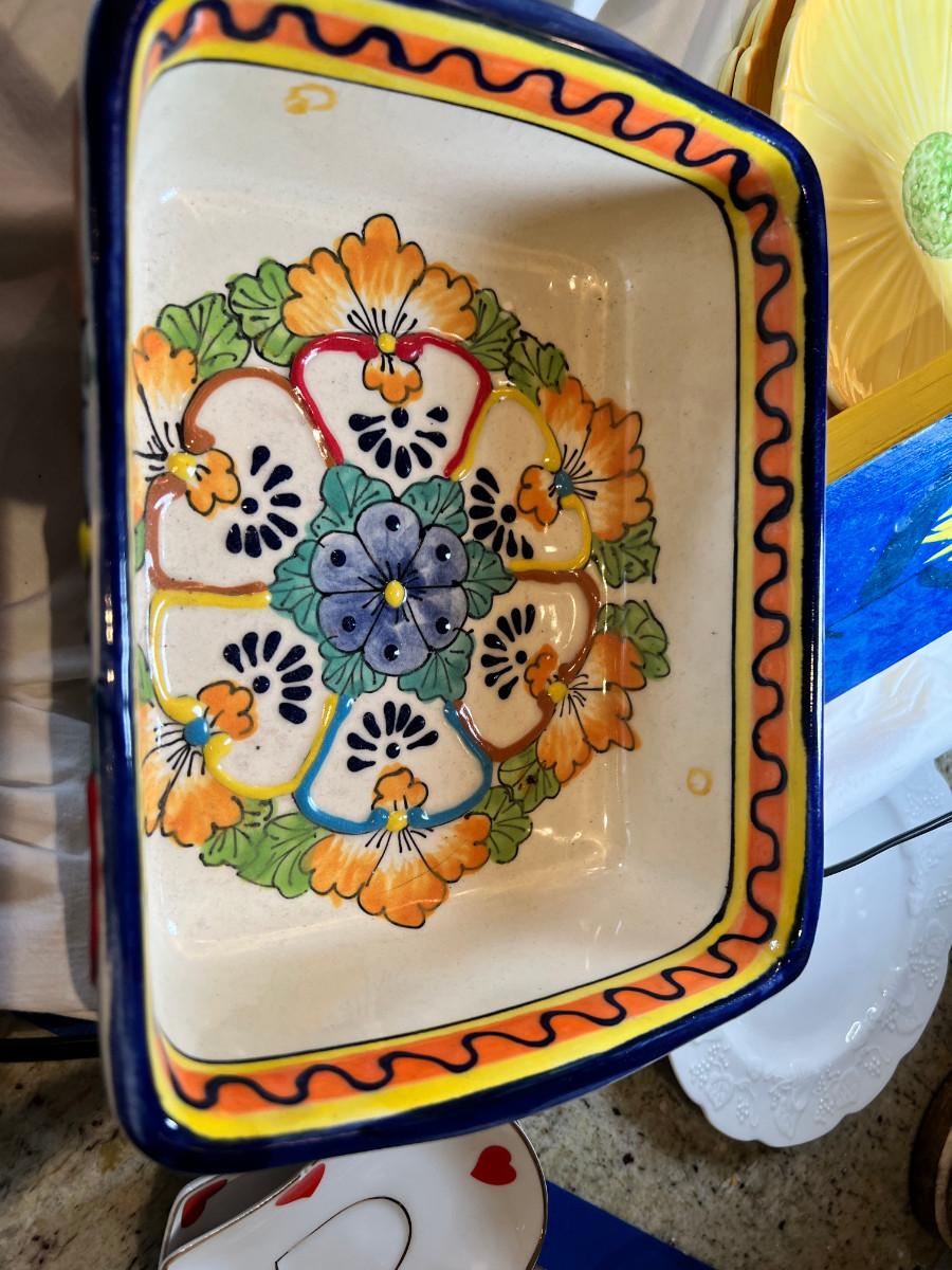 Sunflower floral Plates, cups, Mexican hand painted Casserole dish