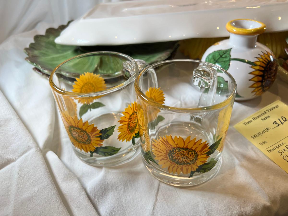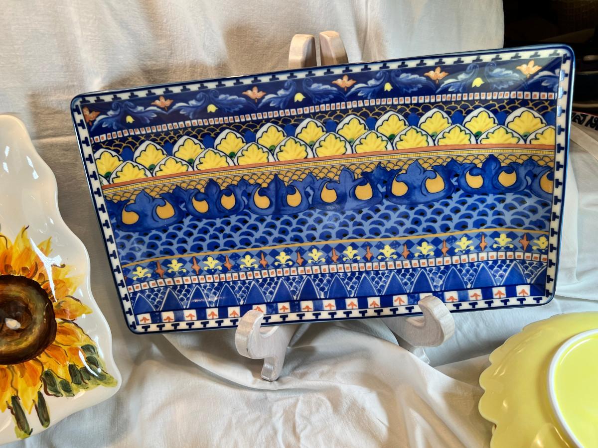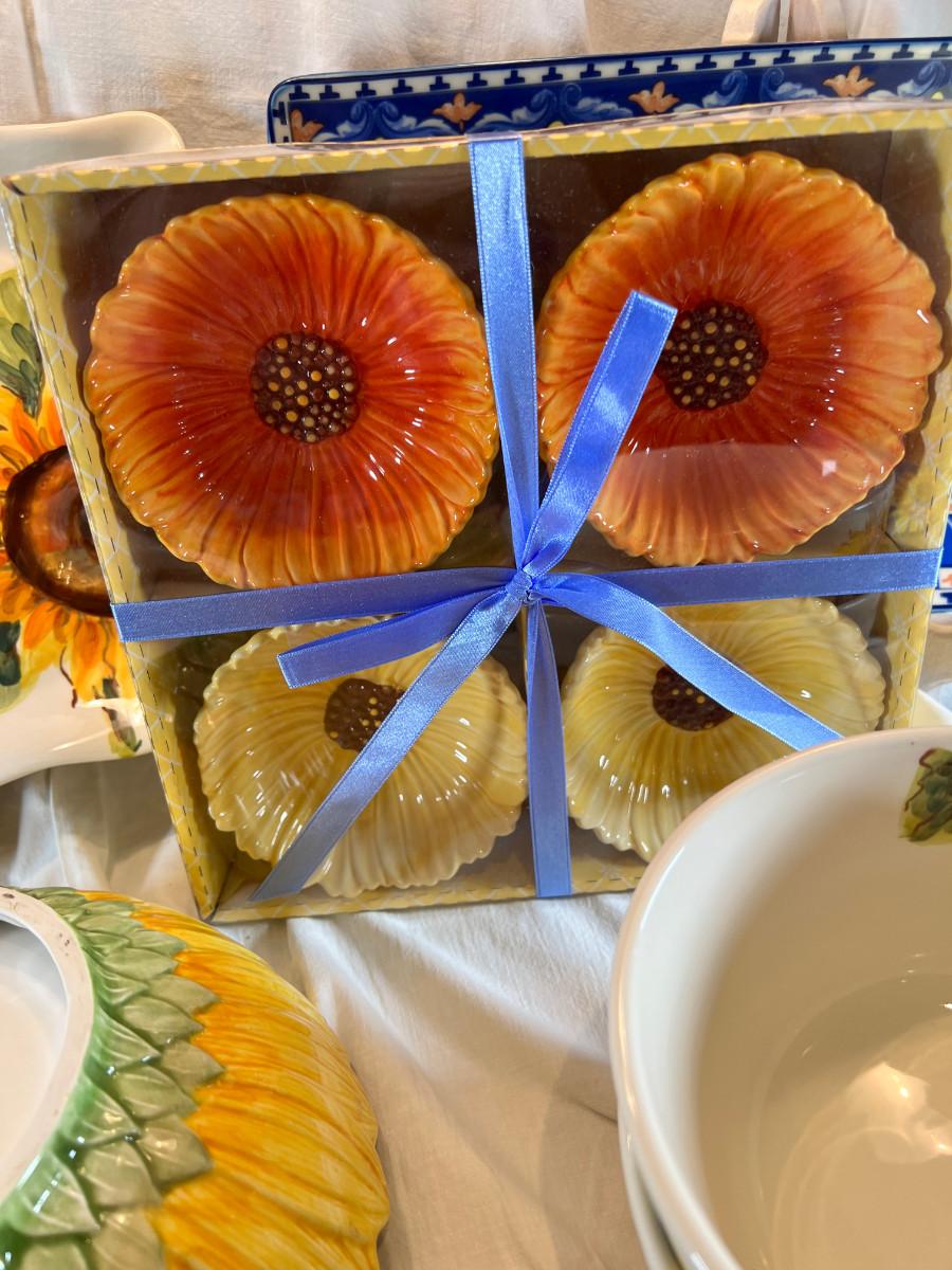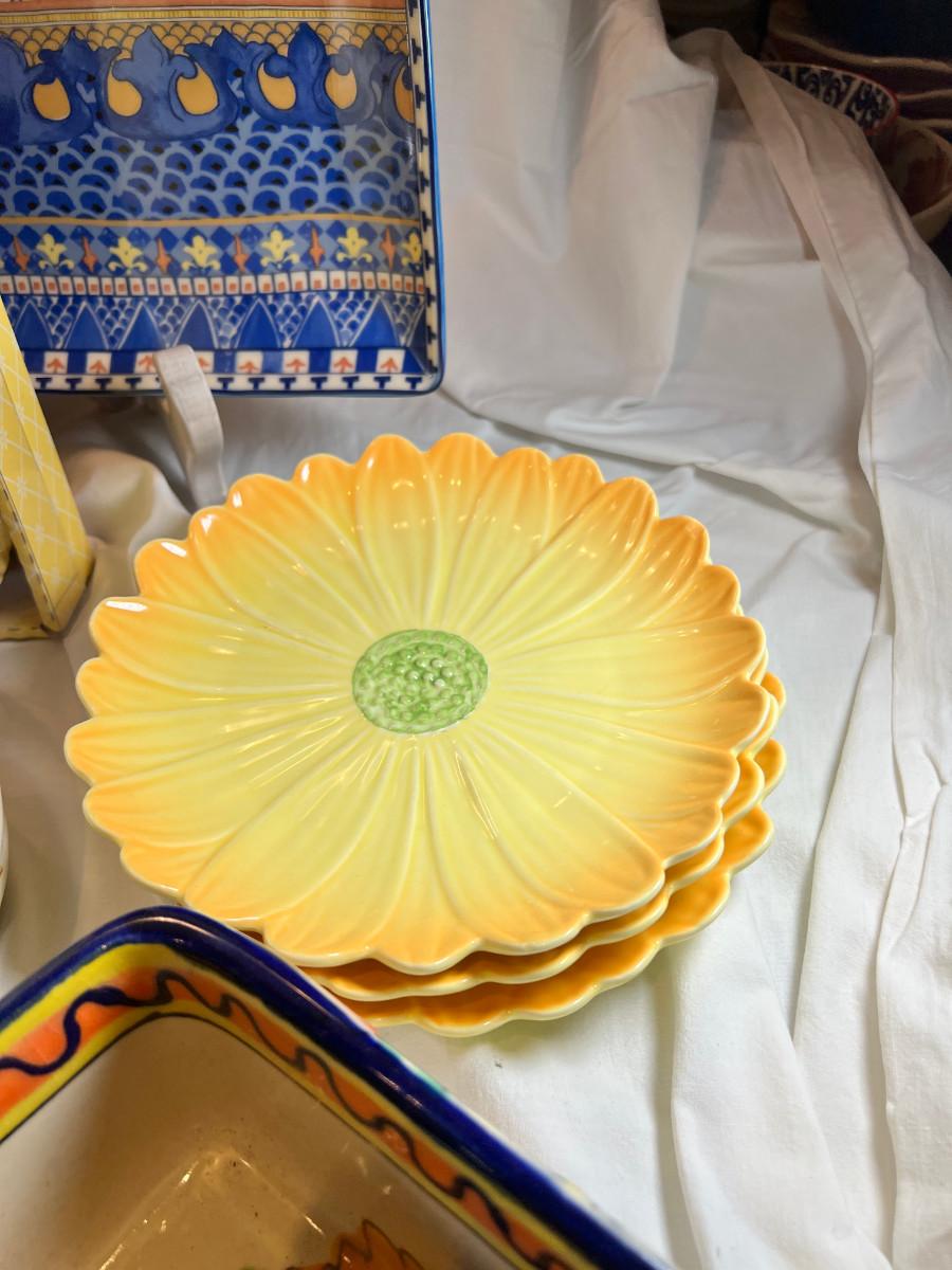 Sunflower floral Plates, cups, Mexican hand painted Casserole dish