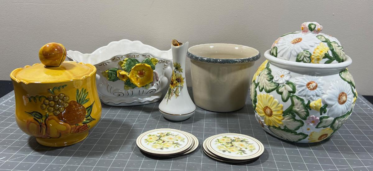 Sunflower Lot 2: Ceramic Cookie Jar, Canister Vase etc.