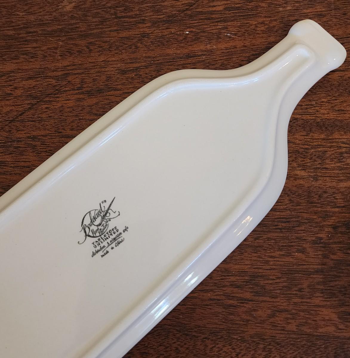 "Boulevard" signed hand painted 12" long bottle shaped tray / spoon rest.