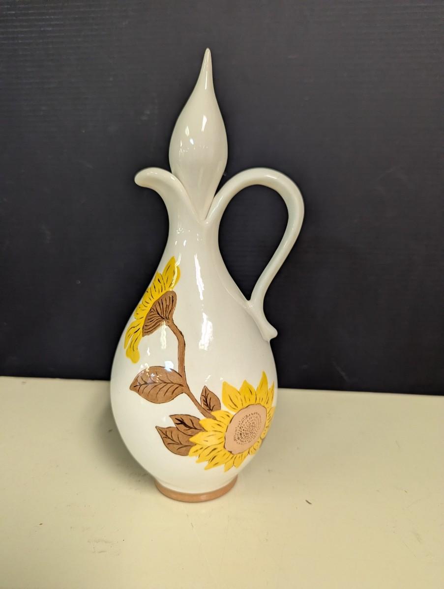 Sunflower Pottery Oil Cruet Signed S. Garris '75