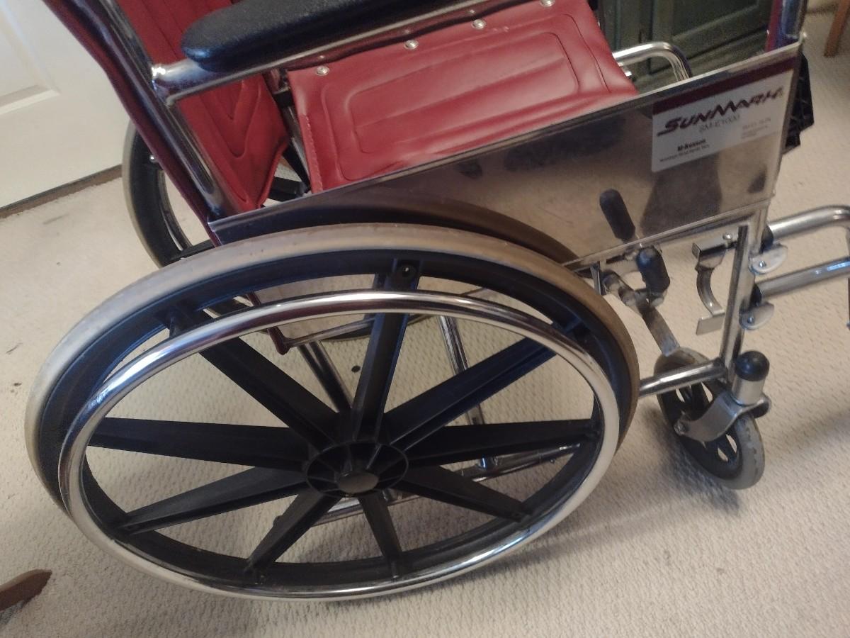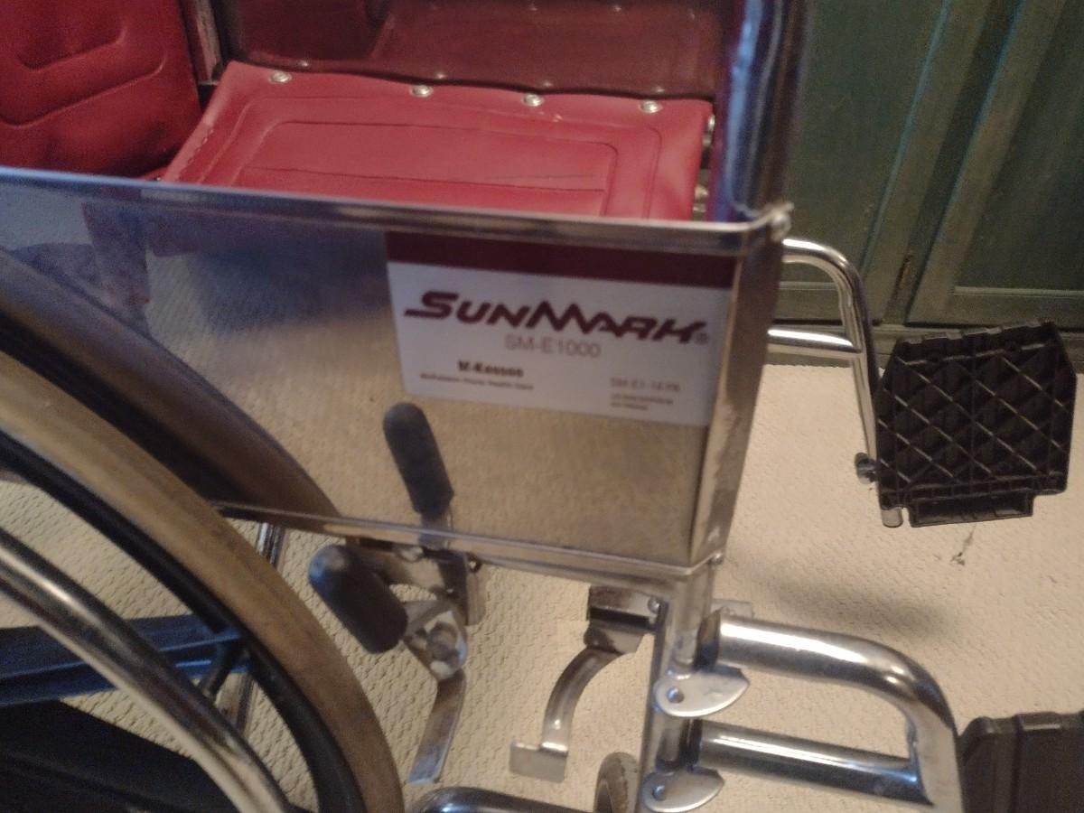 Sunmark Brand Wheelchair. Will need some cleaning.