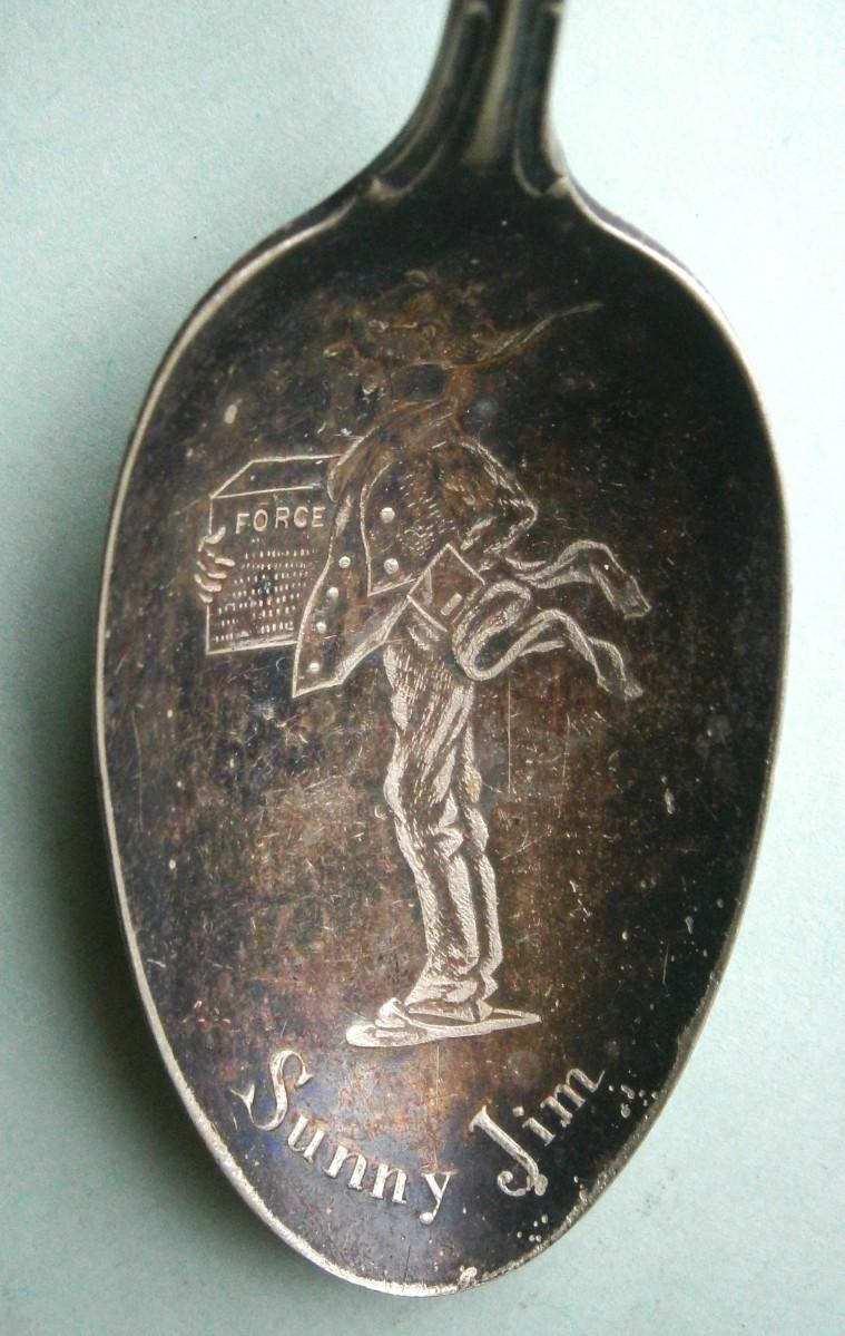 "Sunny Jim" Comic Character Spoon by N.F. Silver Company 1877, 6 in. long, silverplate.