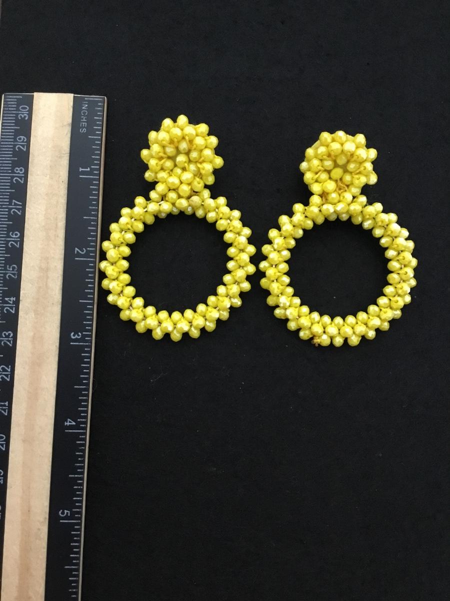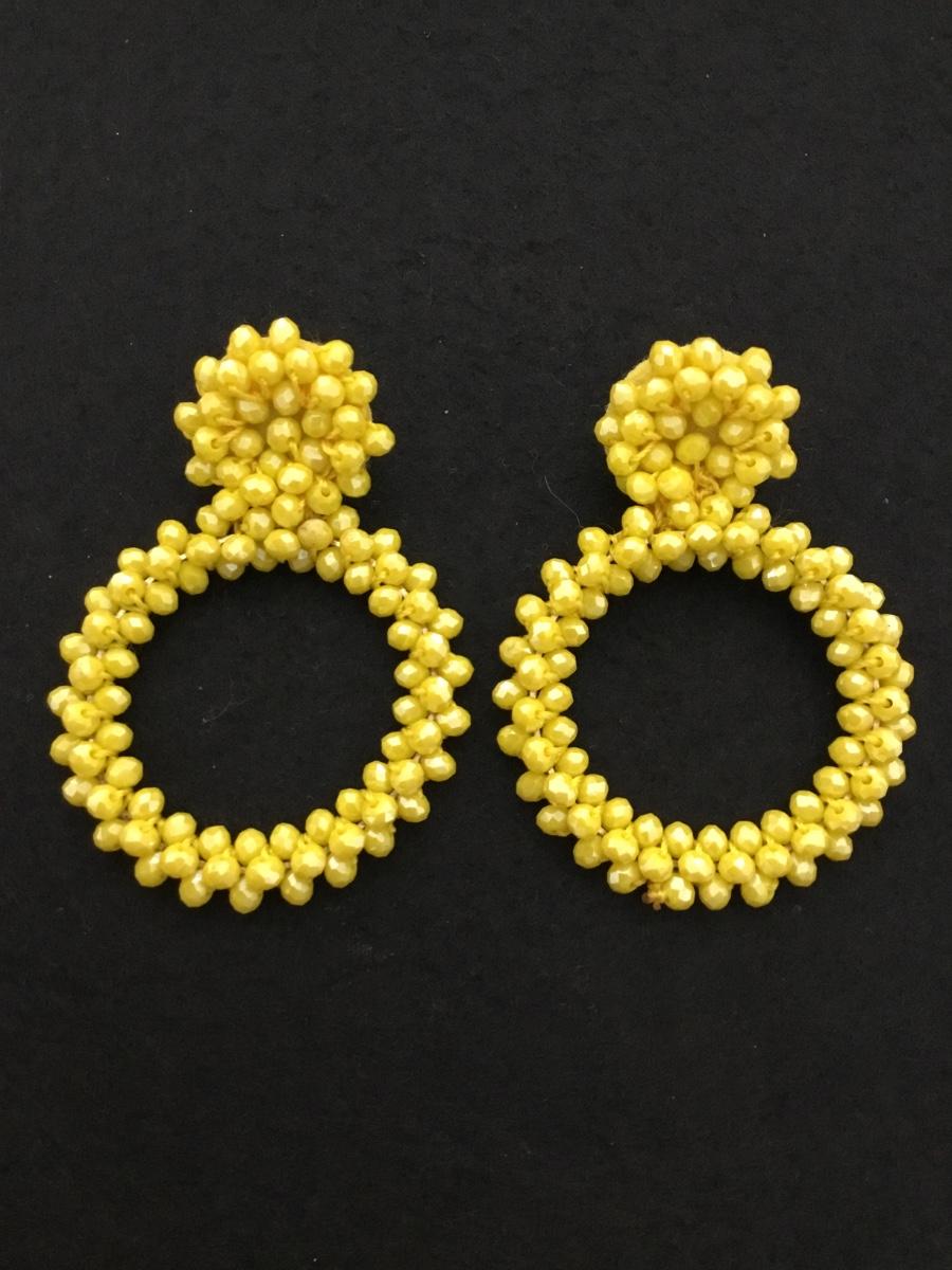 Sunshine, yellow, glass seed, beads, circular, and stud earrings