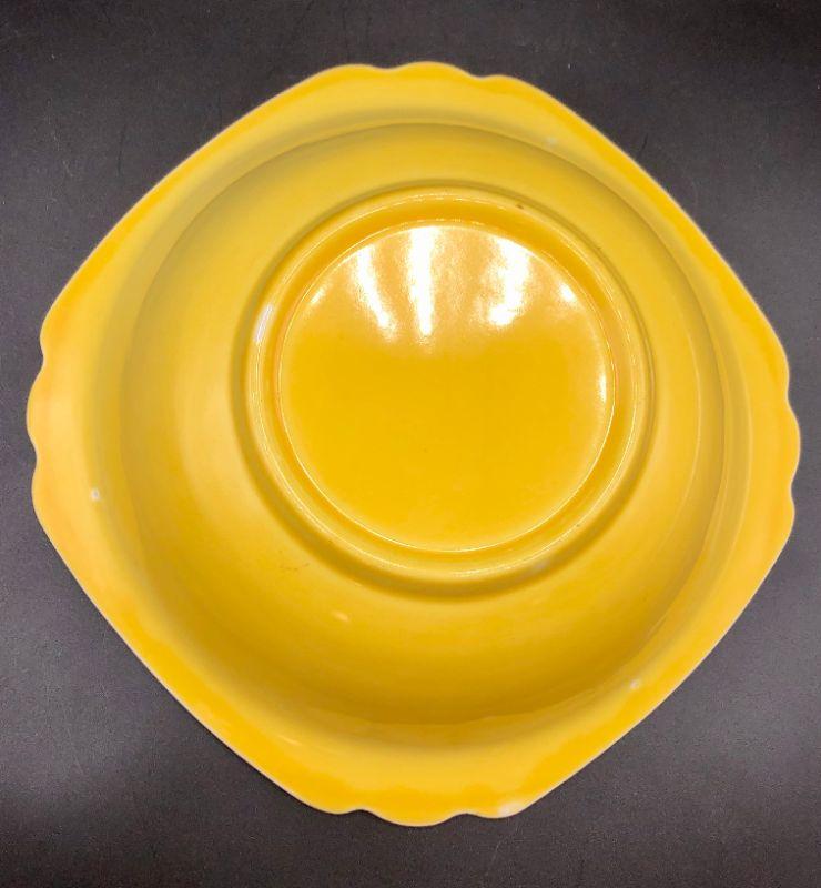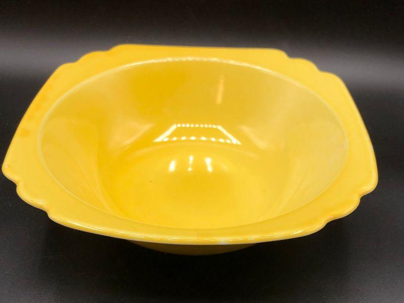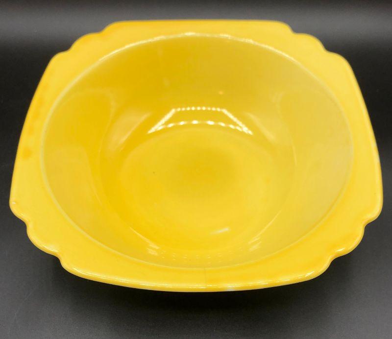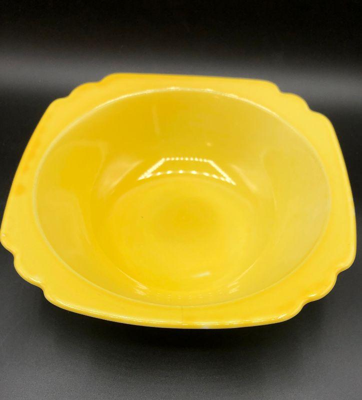 Vintage unmarked Homer Laughlin "Riviera" serving bowl. Bright sunshine yellow color. Great vintage condition.