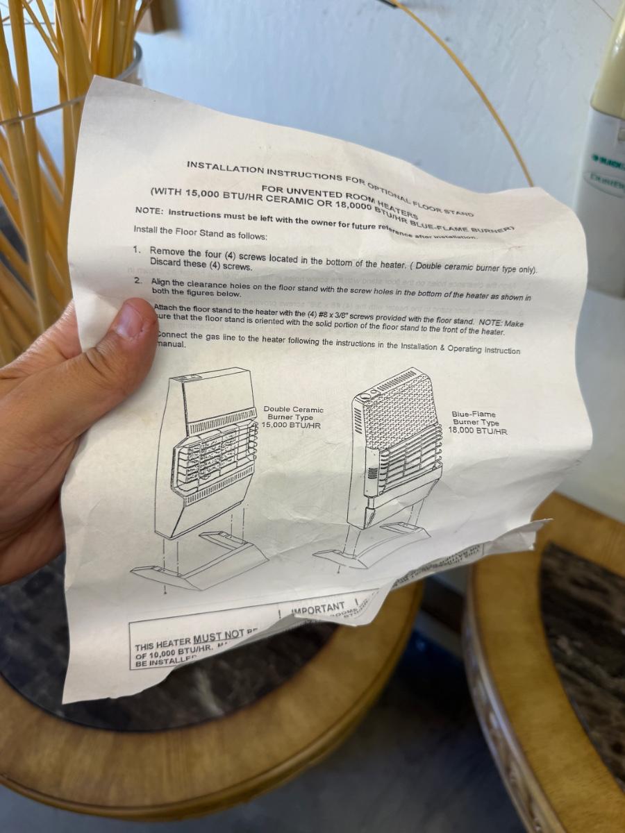 SunStar Corcho New Ceramic Heater install to natural Gas - not propane or electric