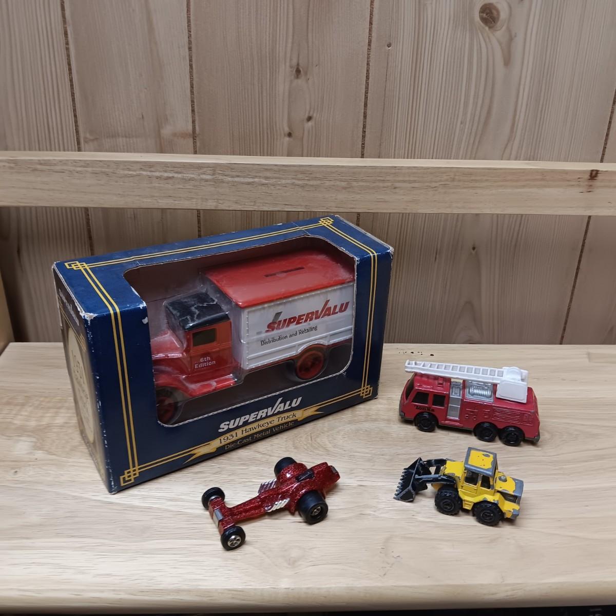 SUPERVALU 1931 HAWKEYE DIE-CAST TRUCK BANK PLUS TONKA RACE CAR AND FIRE TRUCK