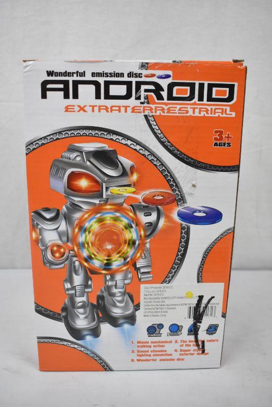 Super Android Toy Robot w/ Disc Shooting Walking, Lights & Sound, DOES NOT SHOOT