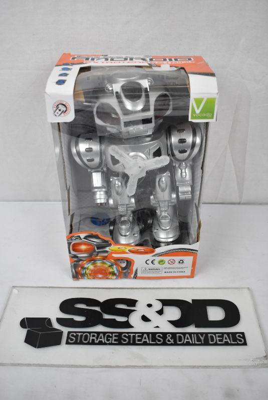 Super Android Toy Robot With Disc Shooting Walking Flashing Lights And Sound Features. Walk, Beeps, Lights Up, DOES NOT SHOOT